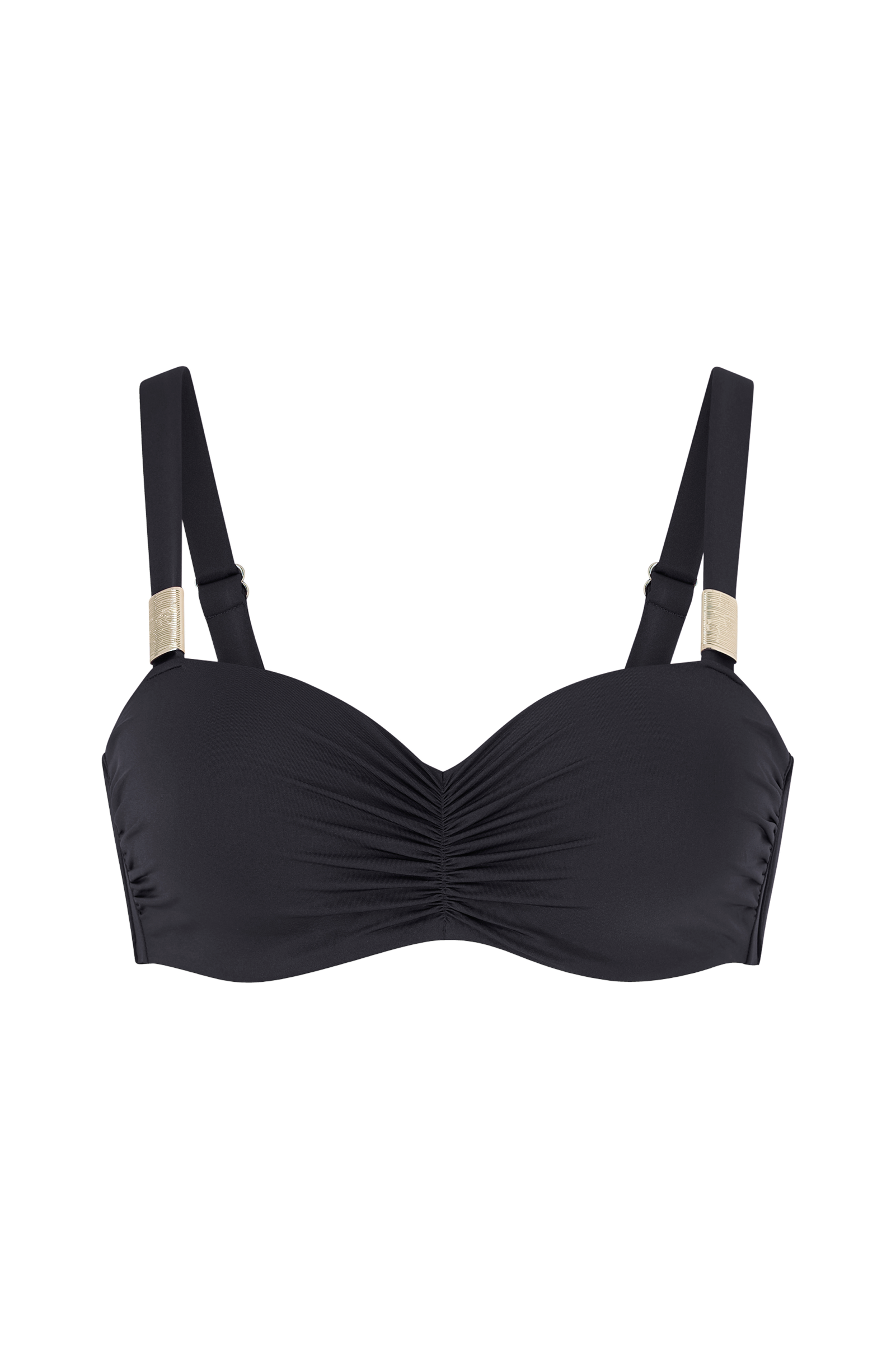 • Foret bikini-bh i polyamid-blanding• Formede, forede skåle med bøjle• Justérbare, aftagelige skulderstropper med detaljer i metal• Draperet, rynket design foran• Spænde i metal i ryggen