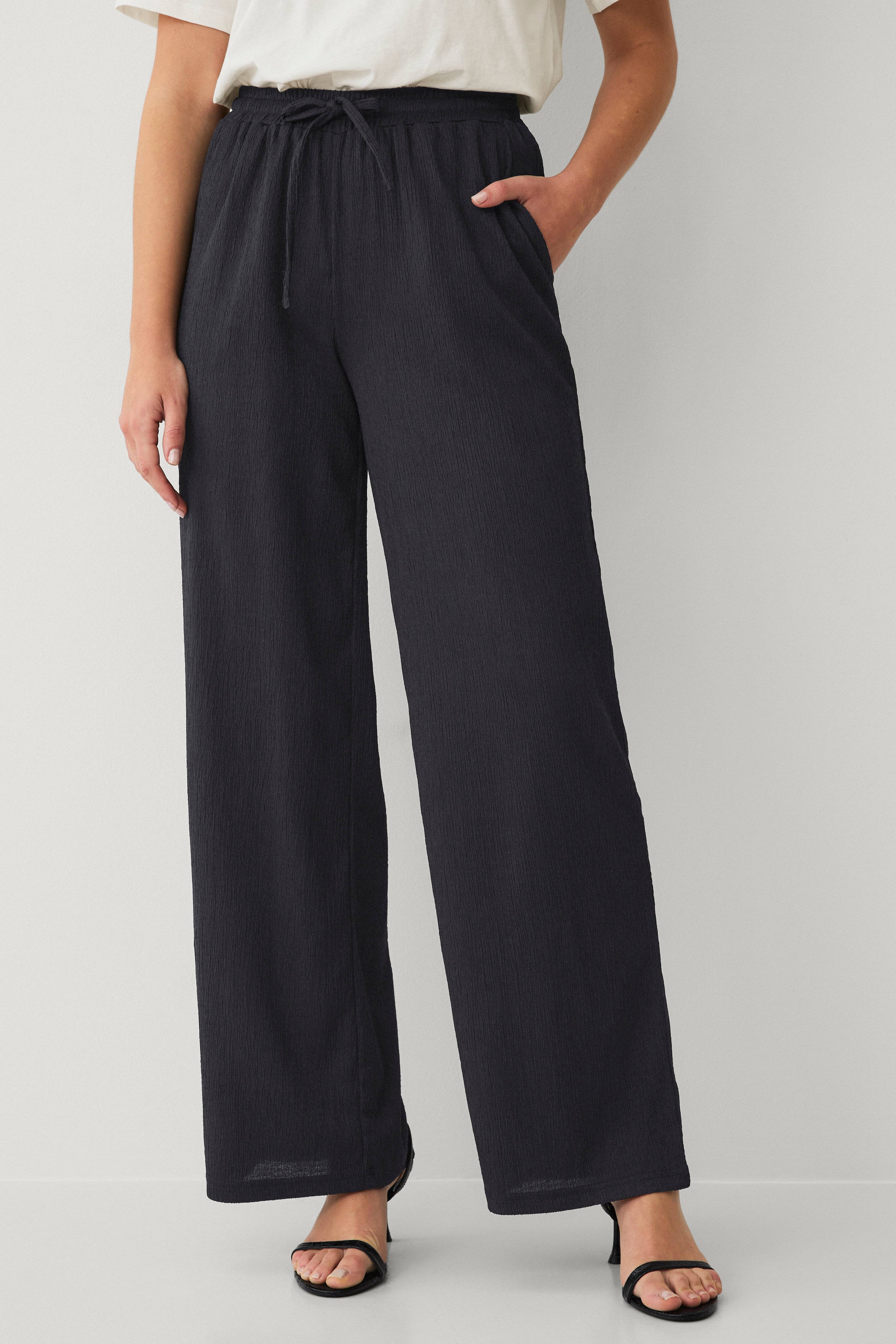 • Bukser med vidde ben i rynket materiale• Lommer i siderne• Elastik med træksnørre ved taljen• Indre benlængde: 79 cm i størrelse S