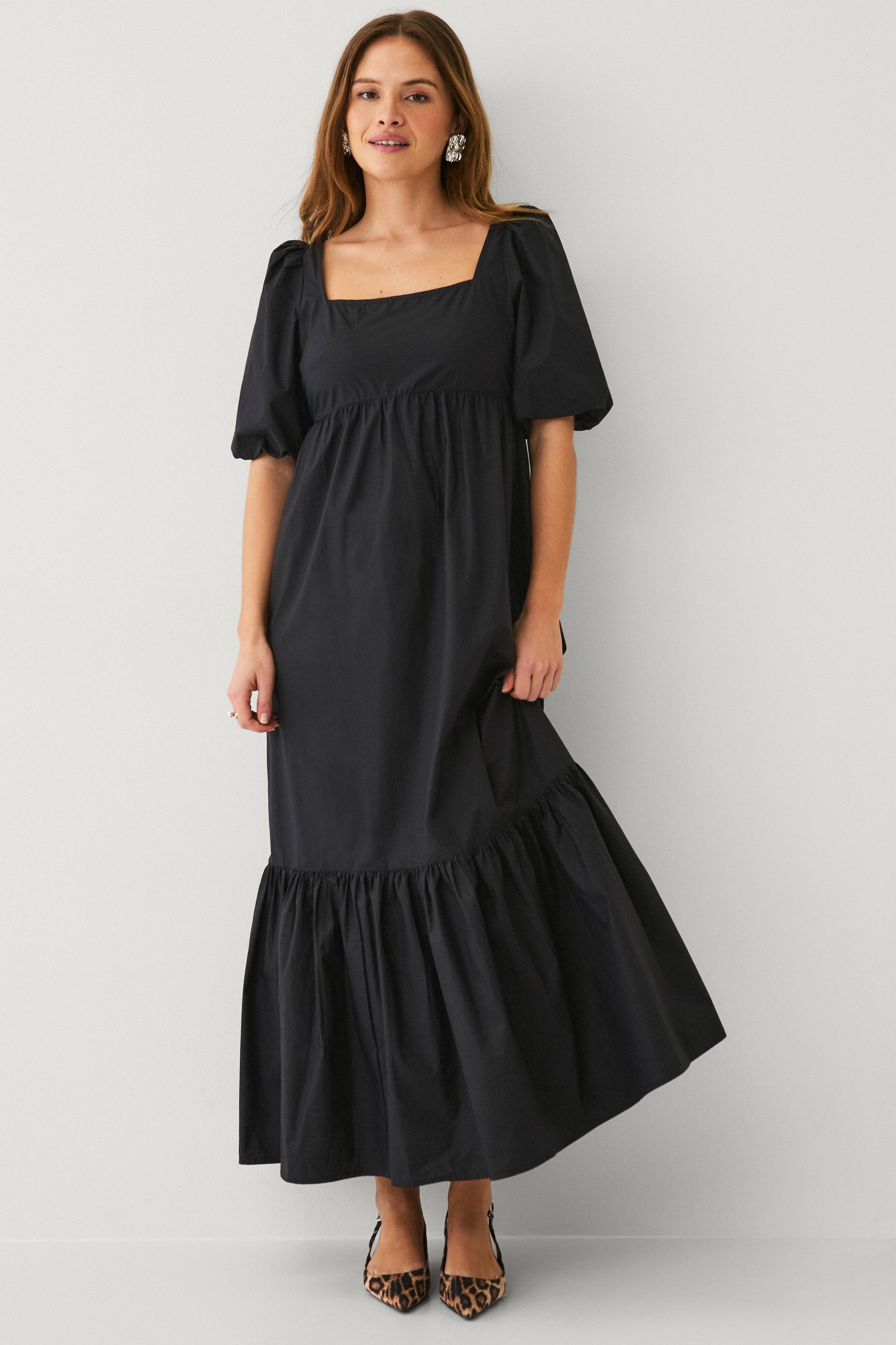 • Model med bred volant ved nederste kant• Kantet halsudskæring• Bred smock oppe bagved• Kort ballonærme• Rynket talje• Længde: 138 cm i størrelse S