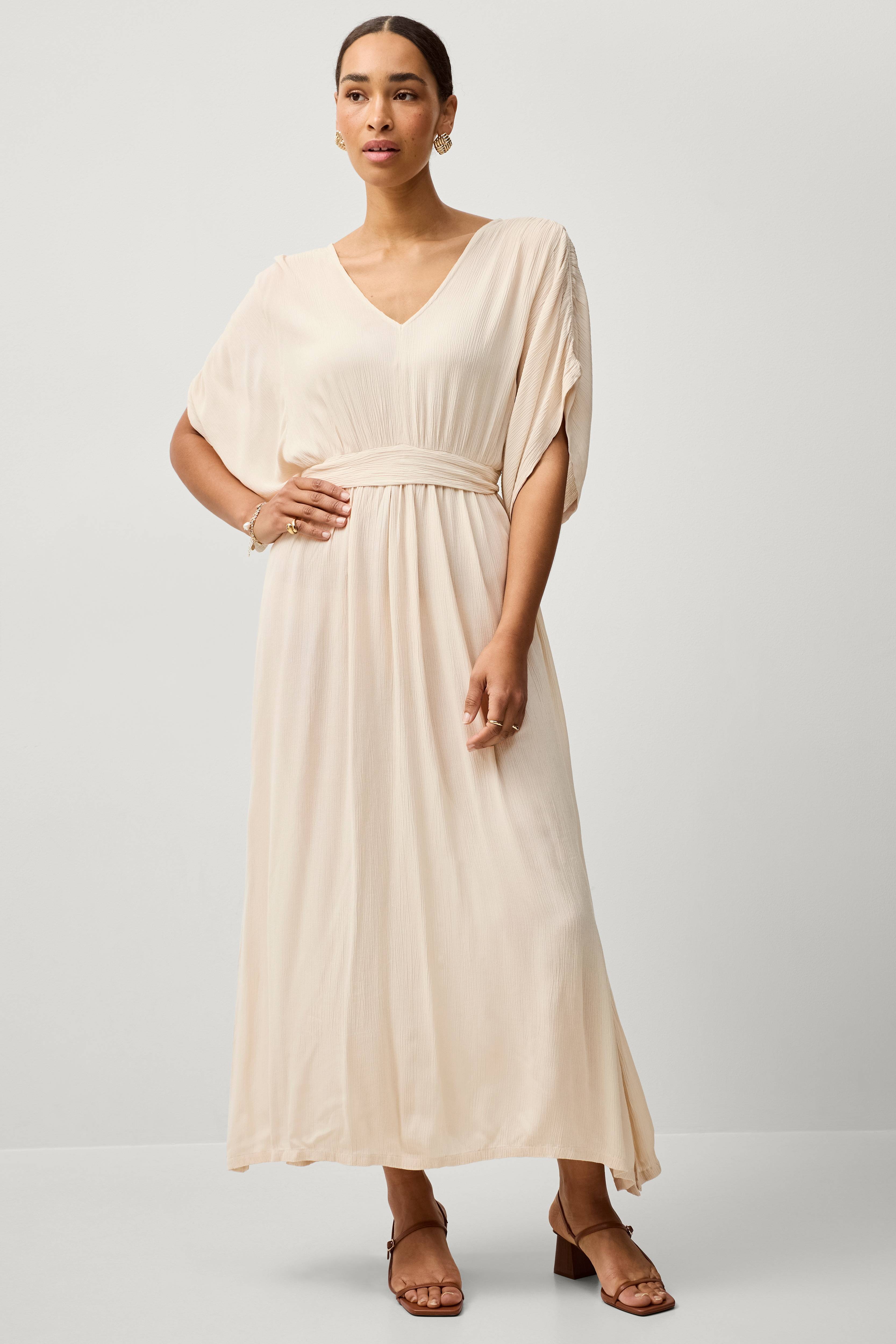 • Store størrelser• Lang model• V-udskæring• Korte, brede ærmer med samling• Defineret talje med fast snøring• Længde: 135 cm i størrelse 34/36