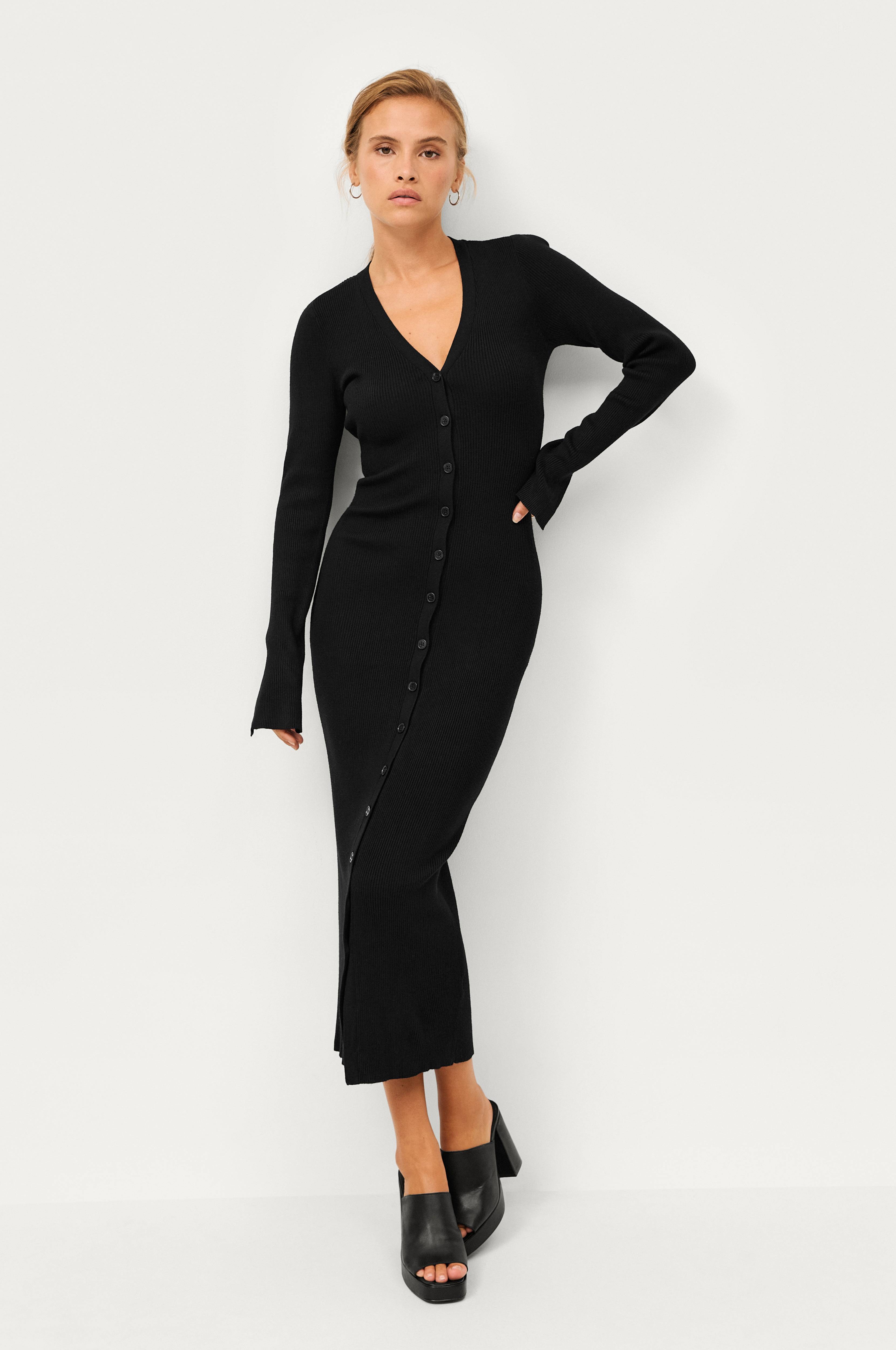 • Figursyet, ribstrikket model• V-formet halsudskæring• Knapper hele vejen frem• Langt ærme med ventilation ved manchetterne• Længde: 136 cm i størrelse 34/36