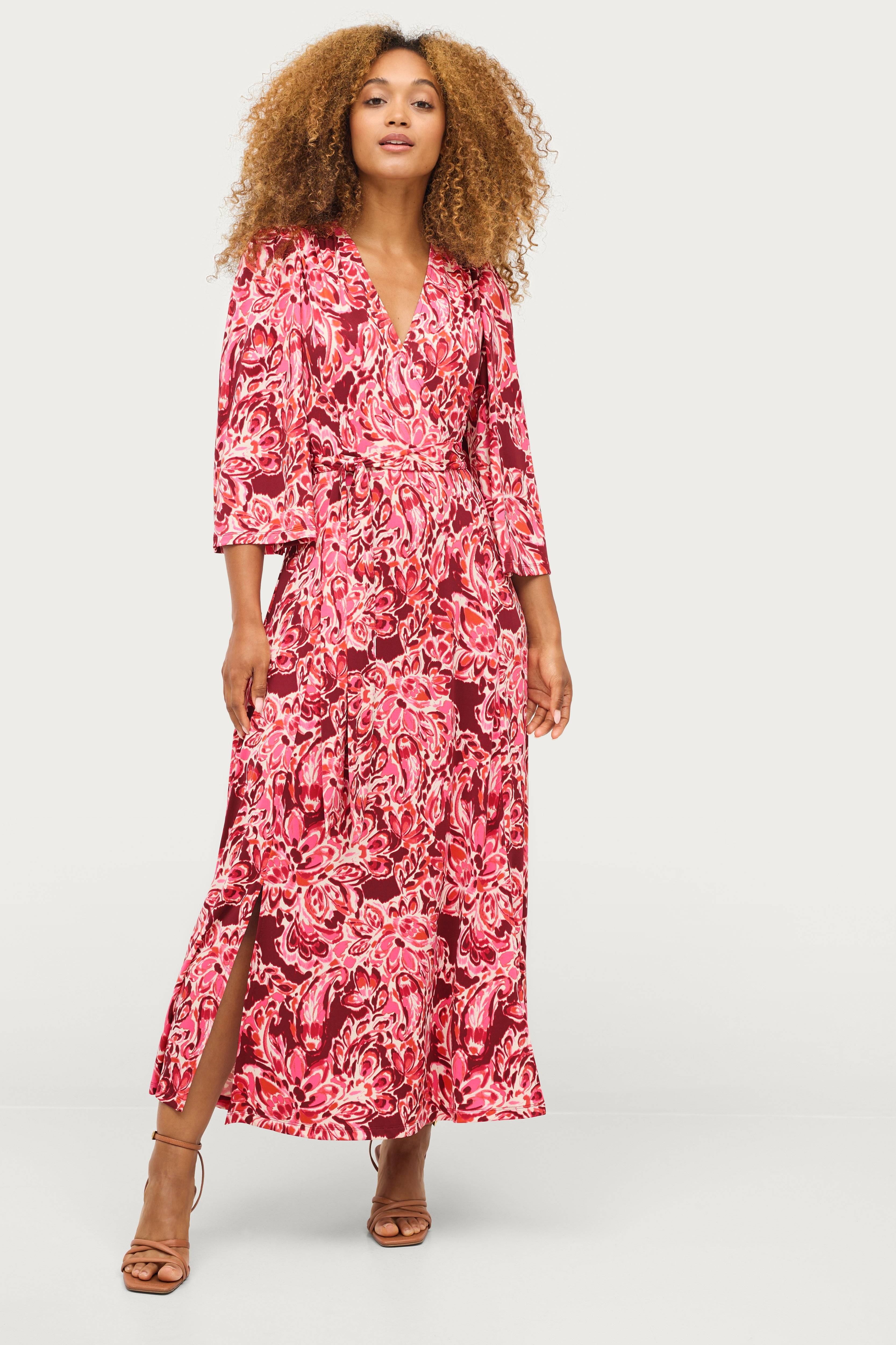 • Model med svaj med bindebælte ved taljen • V-udskæring med slå-om • 3/4 lange ærmer med svaj • Samling på skuldrene • Længde: 138 cm i størrelse 34/36 • Produktet indeholder genindvundet materiale, som genbruges for at reducere mængden af affald samtidigt med at der ikke anvendes nye ressourcer.
