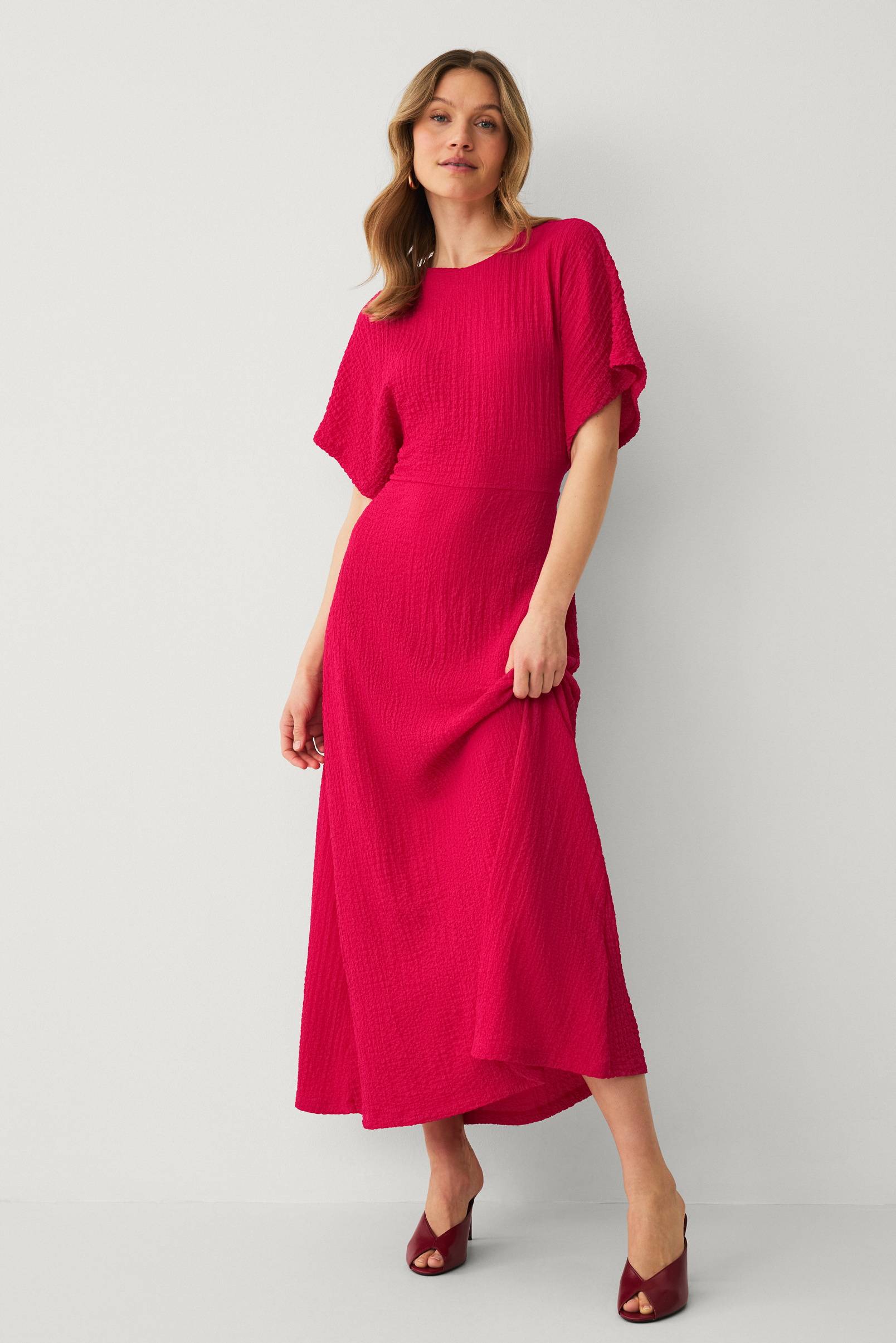 • Lang kjole i jersey med struktur