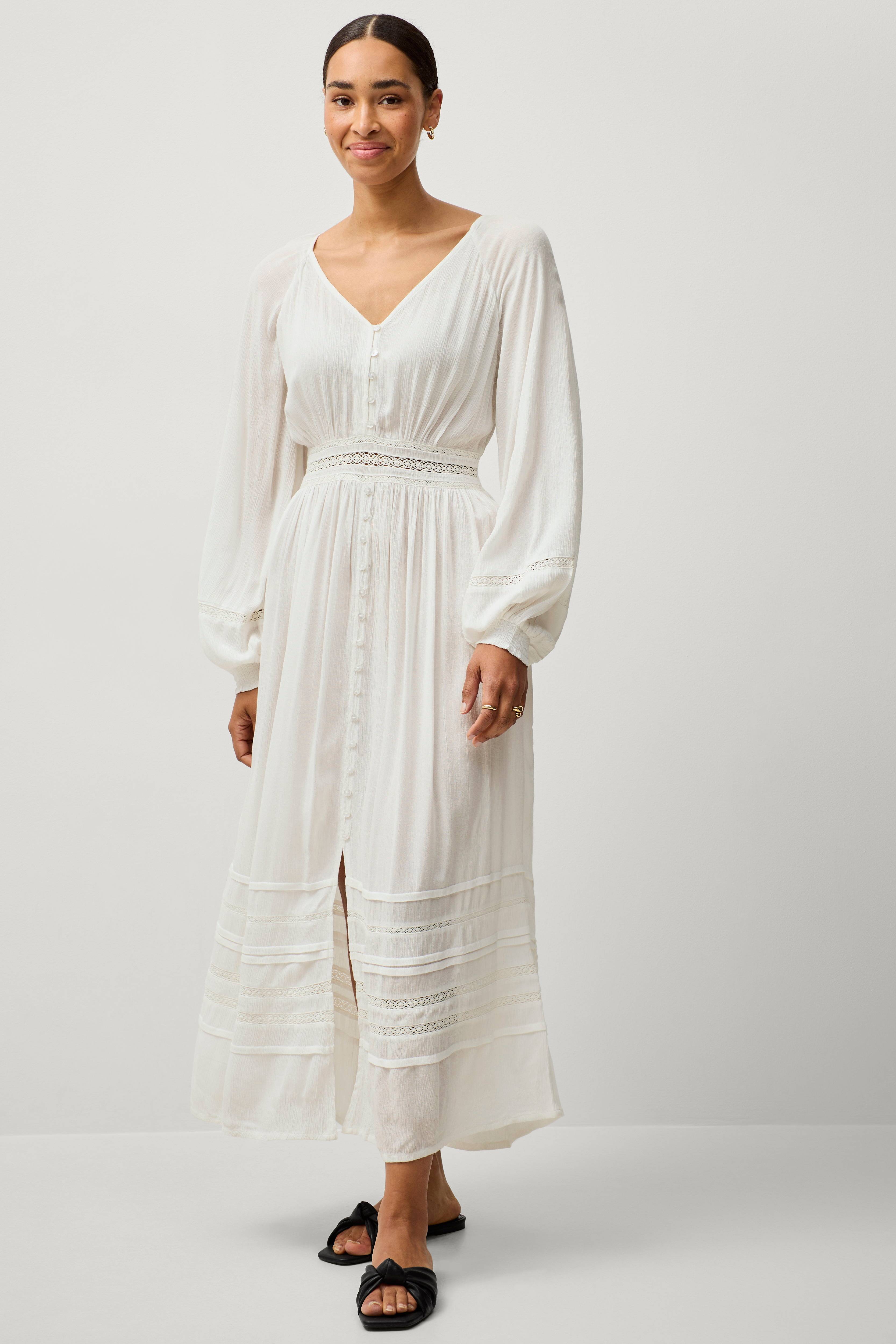 Ellos Collection Maxi kjole med blondeindsatser og knaplukning