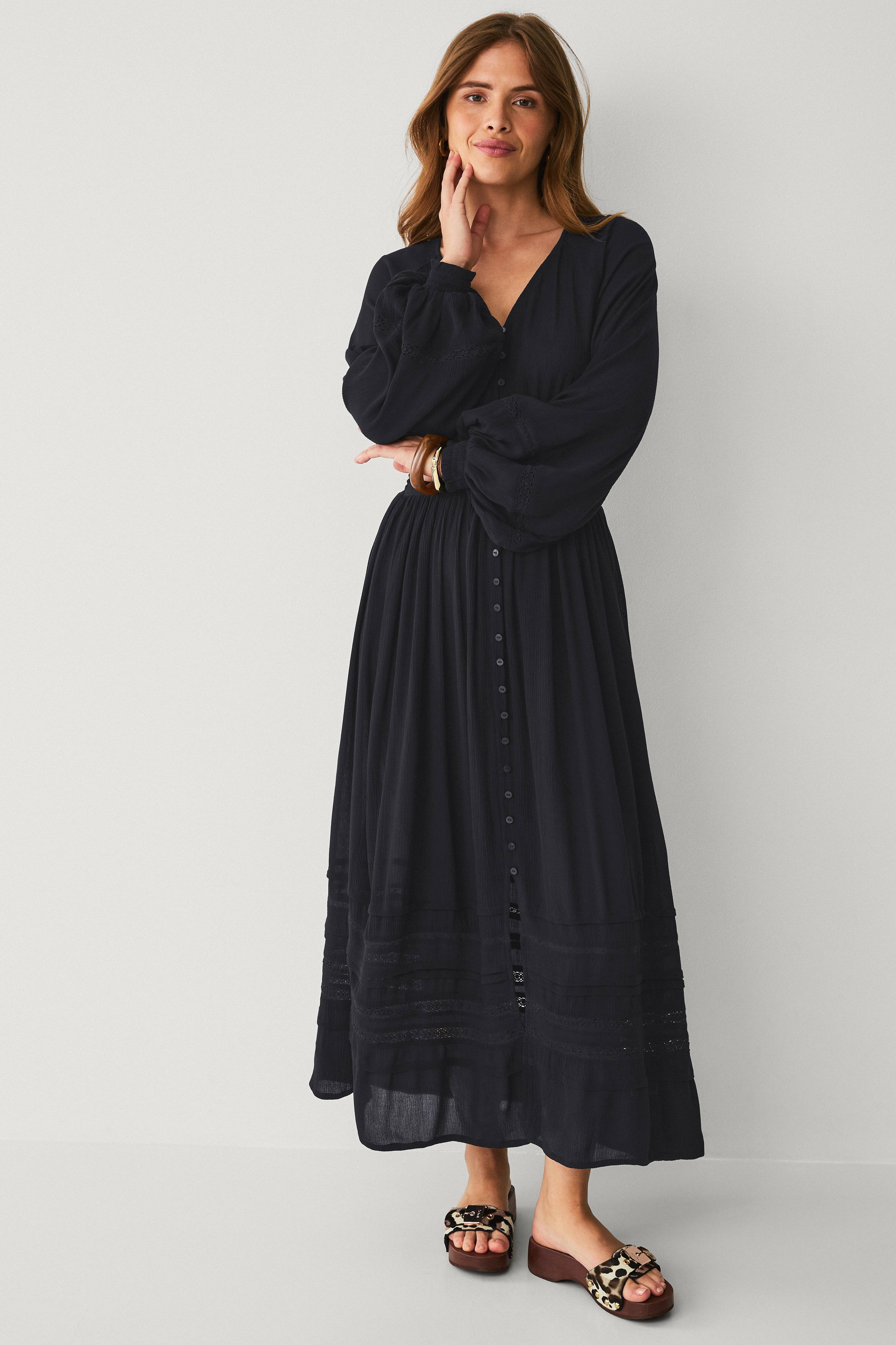 Ellos Collection Maxi kjole med blondeindsatser og knaplukning