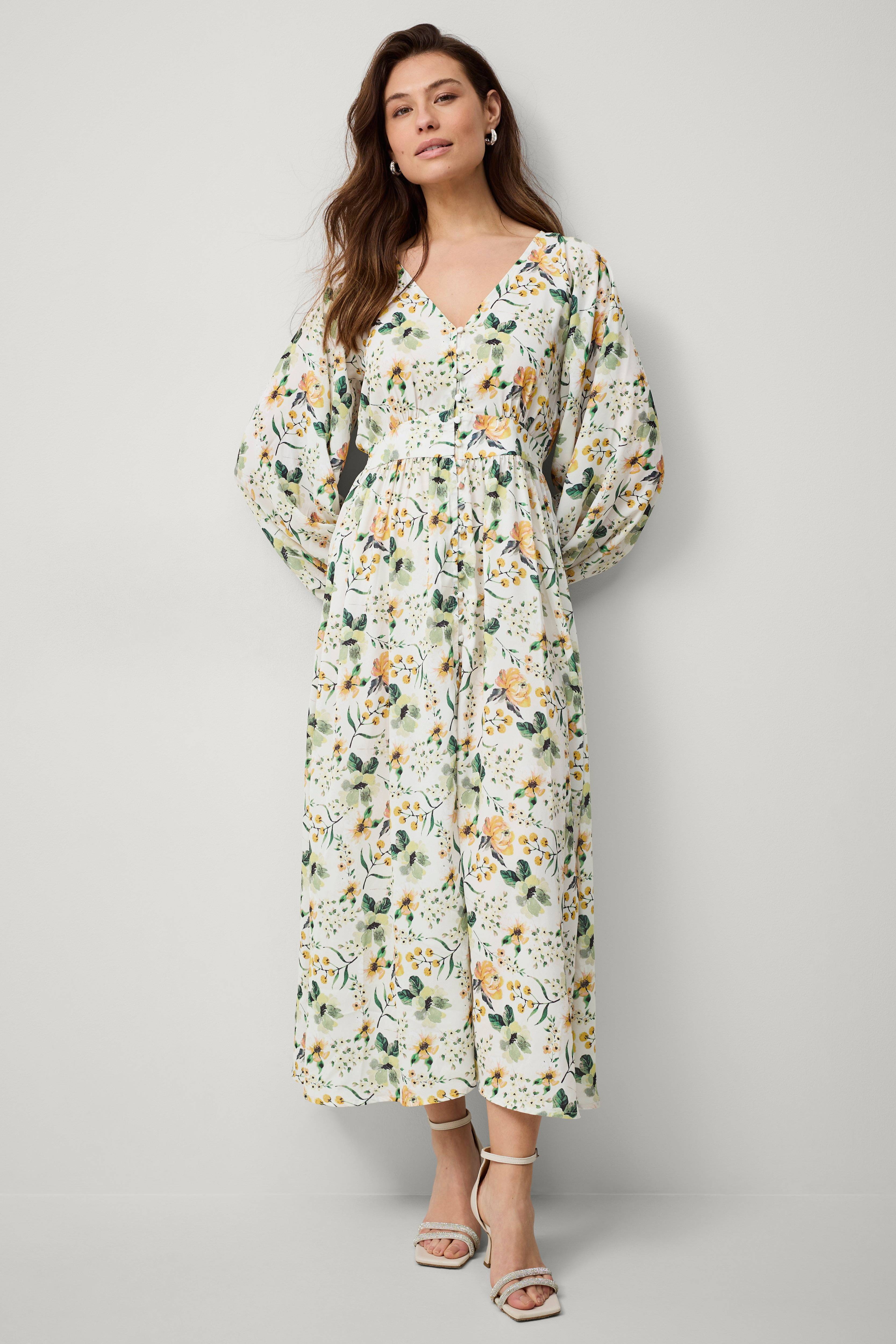Smuk kjole med lidt tungere fald. Hellang på mig, som er 167 cm. Lange ærmer, som man kunne trække lidt op. Jeg havde den på til midsommer og følte mig virkelig flot.