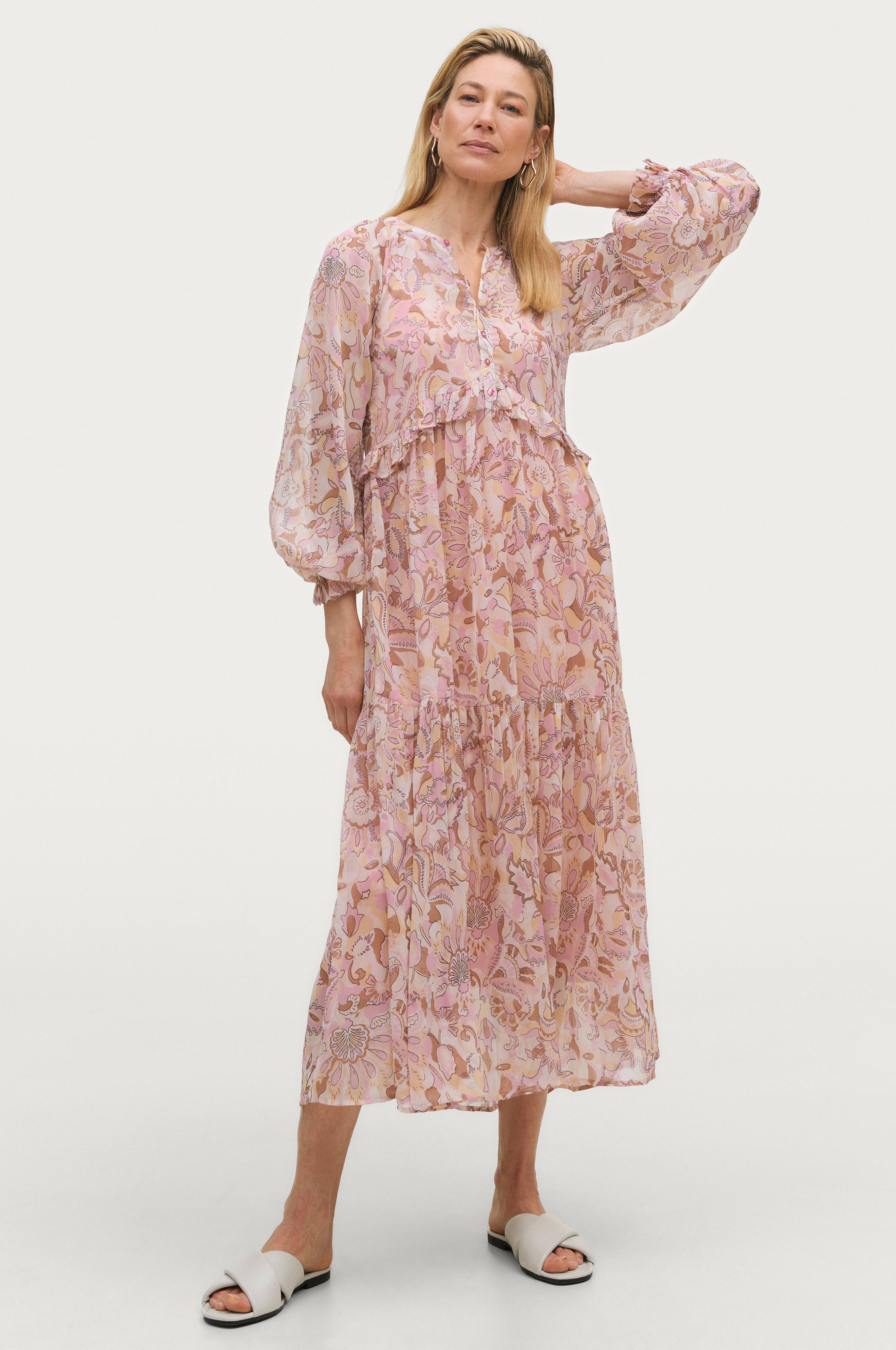 • Kjole i chiffon • Knapper oppe foran • Brede ballonærmer med volant ved manchetterne • Volant under brystet • Underkjole i jersey • Længde: 131 cm i størrelse 34/36 • Produktet indeholder genindvundet materiale, som genbruges for at reducere mængden af affald samtidigt med at der ikke anvendes nye ressourcer.