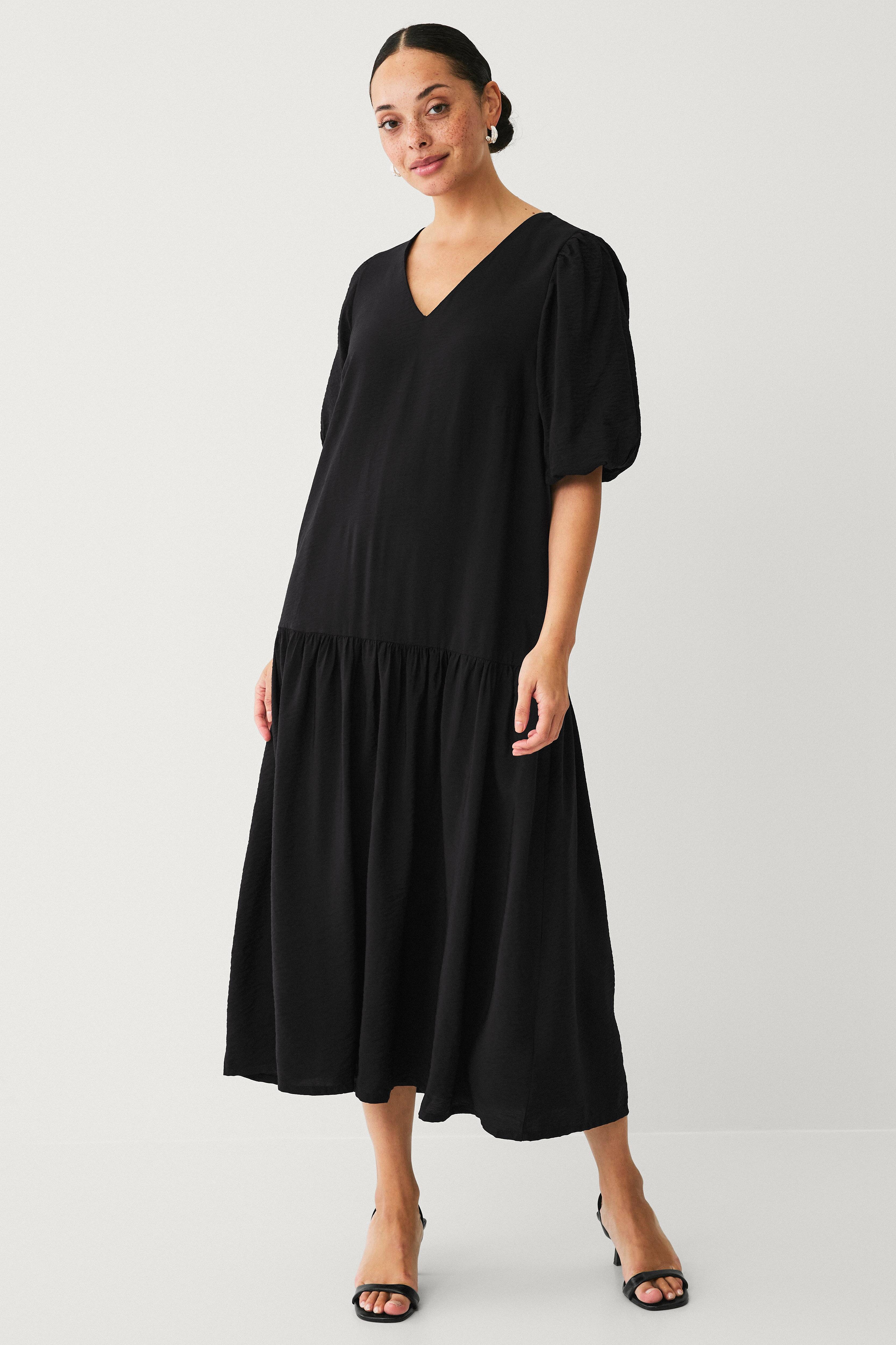 Smuk til fester og hverdagen! Størrelsen var god.. og stoffet.. er smukt.. ærmerne er lidt pufærmede.. jeg havde brug for en kjole til et bryllup. Denne passer godt dertil!