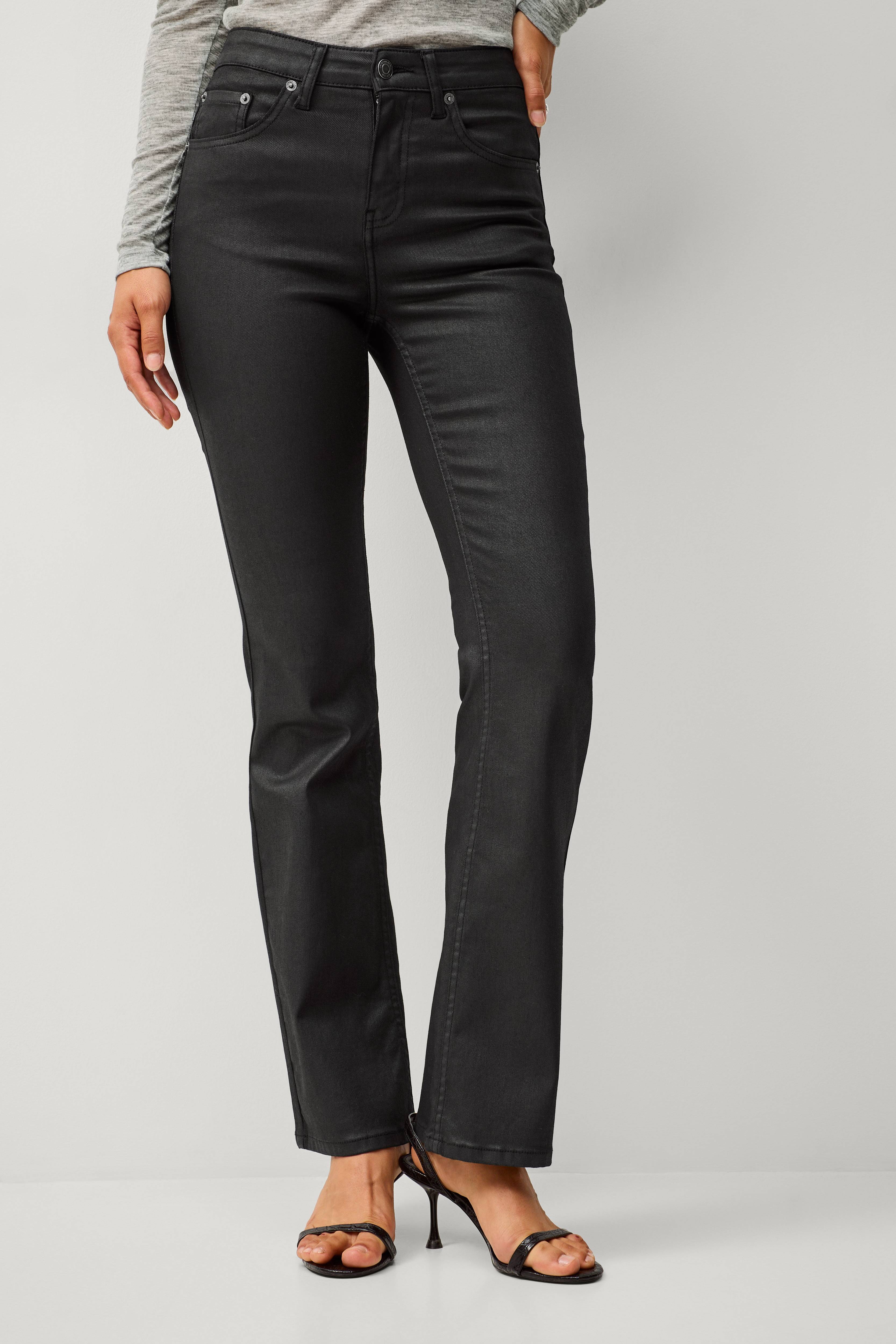 De udvidede coatede jeans i størrelse 40 er lige tilpas stramme og sidder godt. Jeg var nødt til at forkorte benet med en opkrængning, så de ikke går under hælen (slæber på jorden). Jeg er 170 cm…