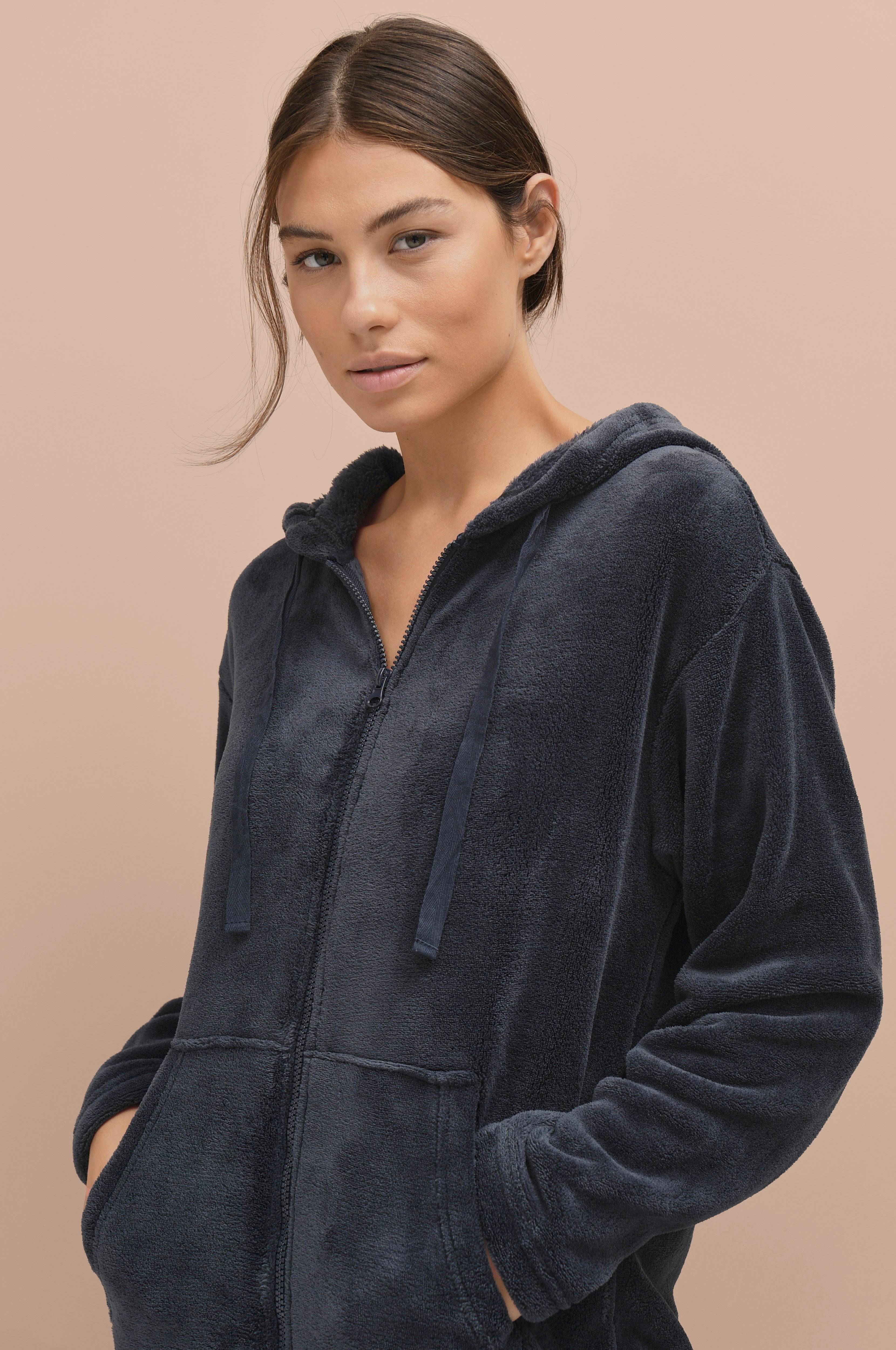 - Blød model i genindvundet polyester med lodden inderside - Hætte med løbegang - Kængurulomme - Langt ærme - Løbegang i kanten forneden - Længde: 100 cm i str. 38/40 - Produktet indeholder genindvundet materiale, som genbruges for at reducere mængden af affald samtidigt med at der ikke anvendes nye ressourcer.