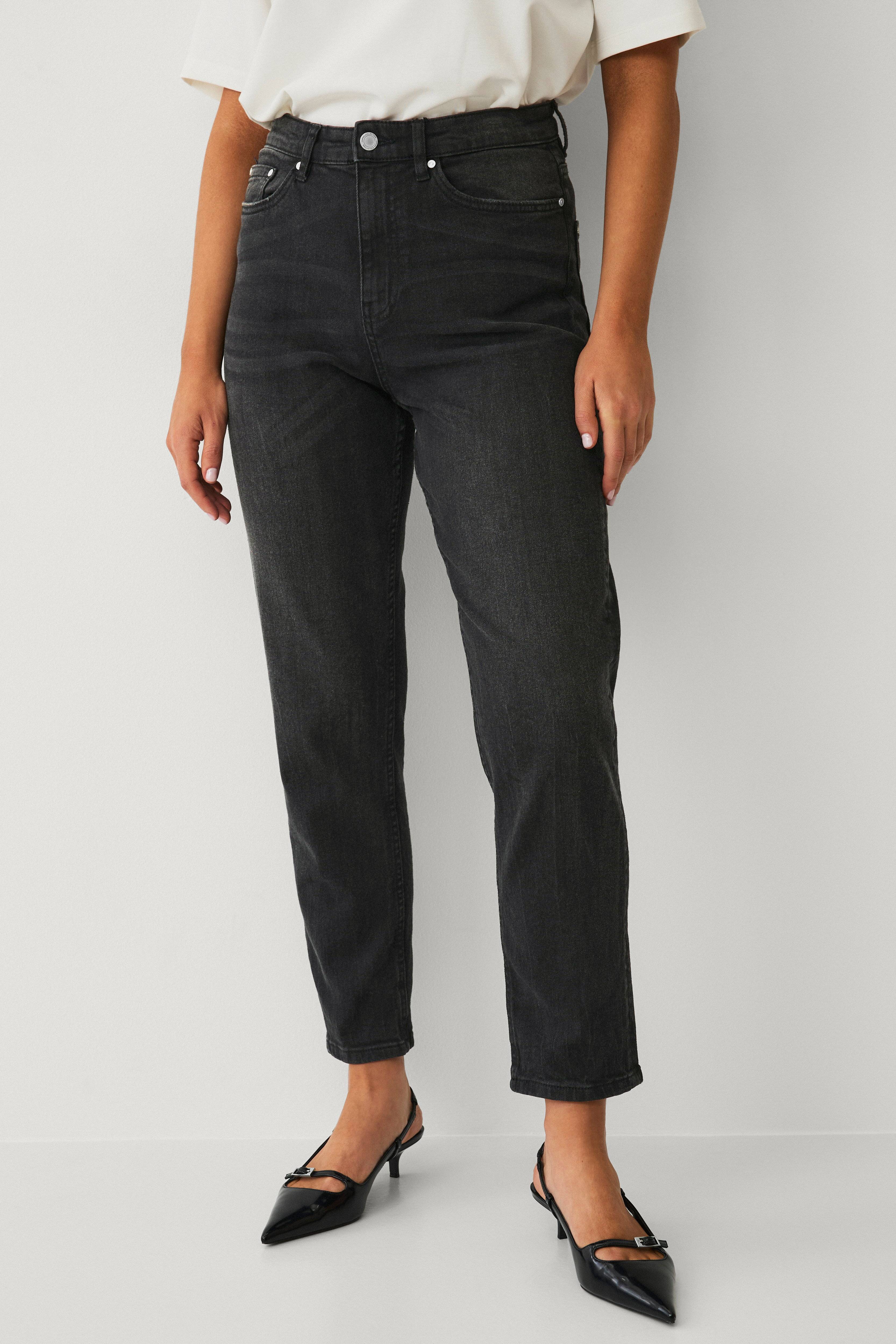 Dette er mit tredje par af disse jeans. Passende høje i taljen. Normale i længden til mine 163 cm. Passer i størrelsen. Bløde og behagelige. Giver sig en del.