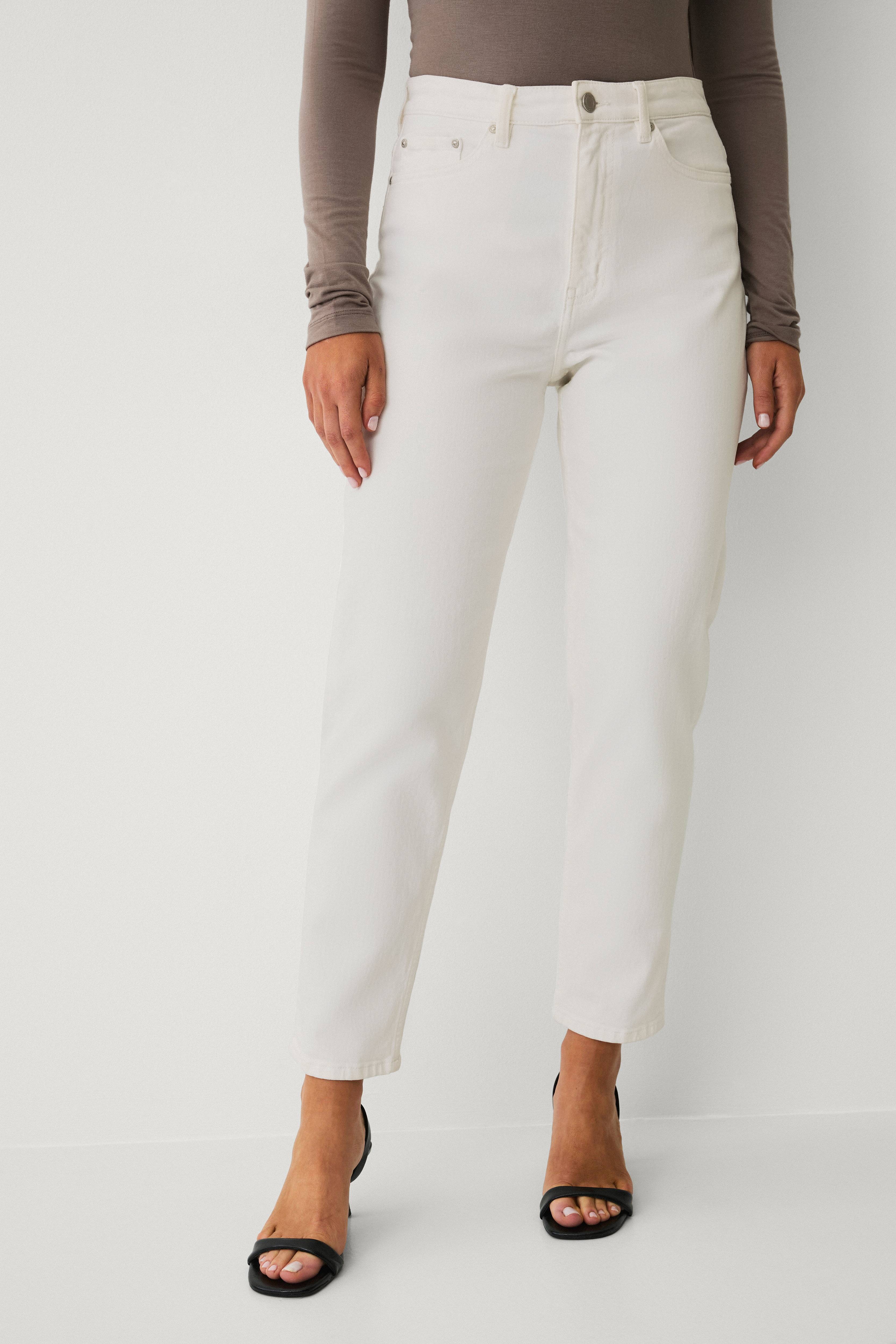 • Afslappet pasform • Høj talje med indsnævrende ben og noget bredere lår • Indsnævrende benafslutning • Femlommemodel • Strækdenim • Kan opfattes som stor i størrelse