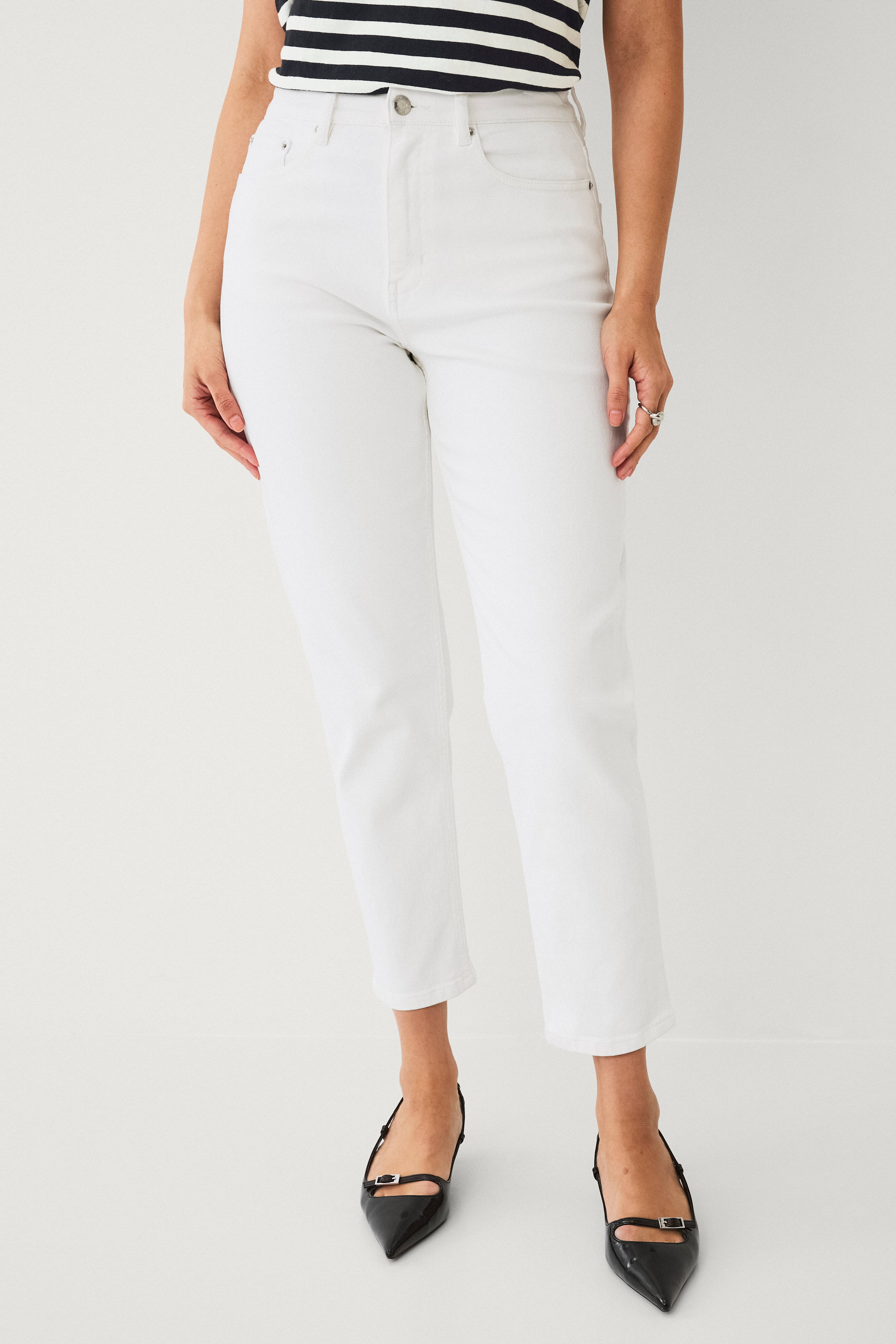 • Afslappet pasform • Høj talje med indsnævrende ben og noget bredere lår • Indsnævrende benafslutning • Femlommemodel • Strækdenim • Kan opfattes som stor i størrelse