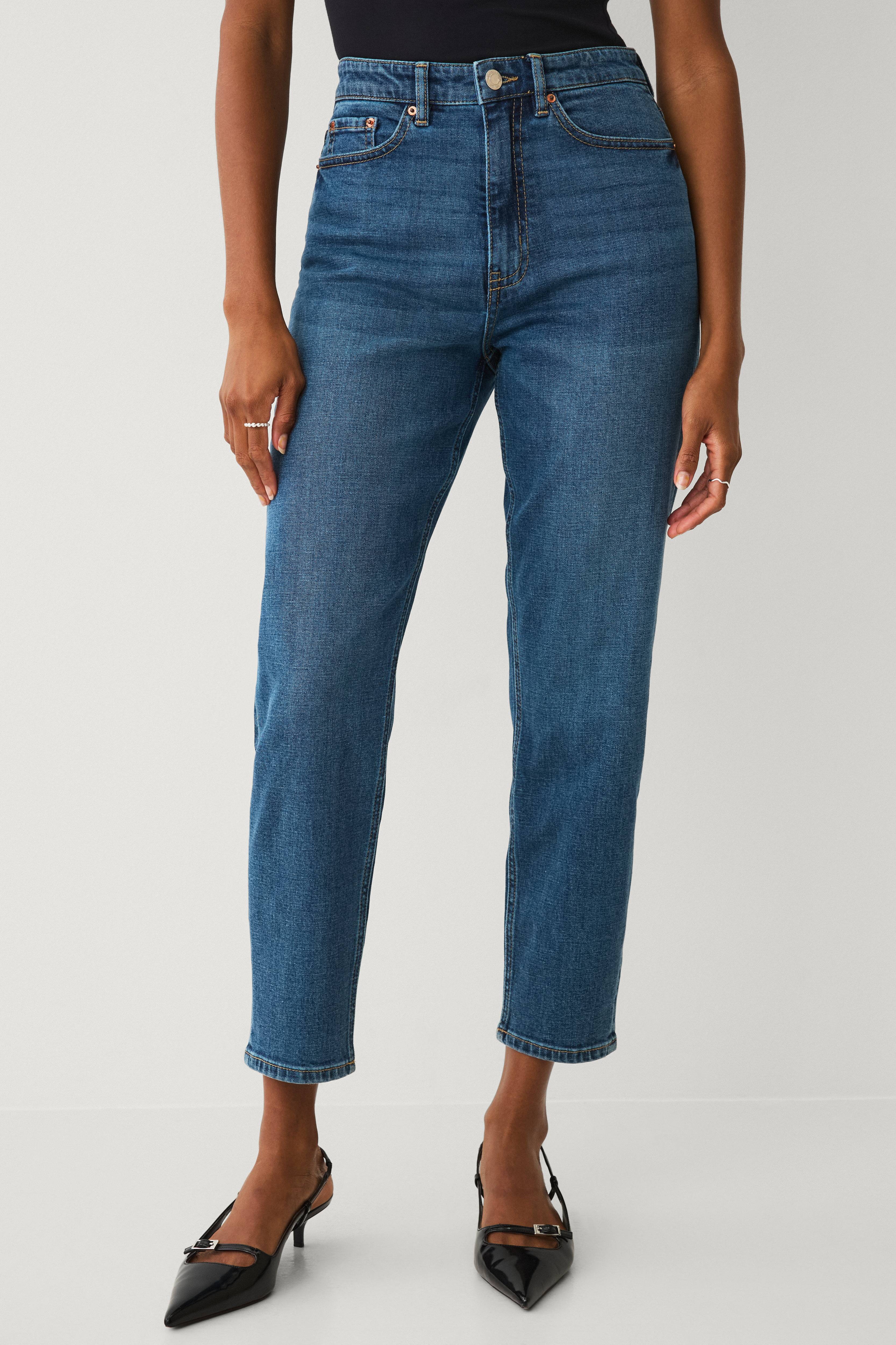 Dette er mit tredje par af disse jeans. Passende høje i taljen. Normale i længden til mine 163 cm. Passer i størrelsen. Bløde og behagelige. Giver sig en del.