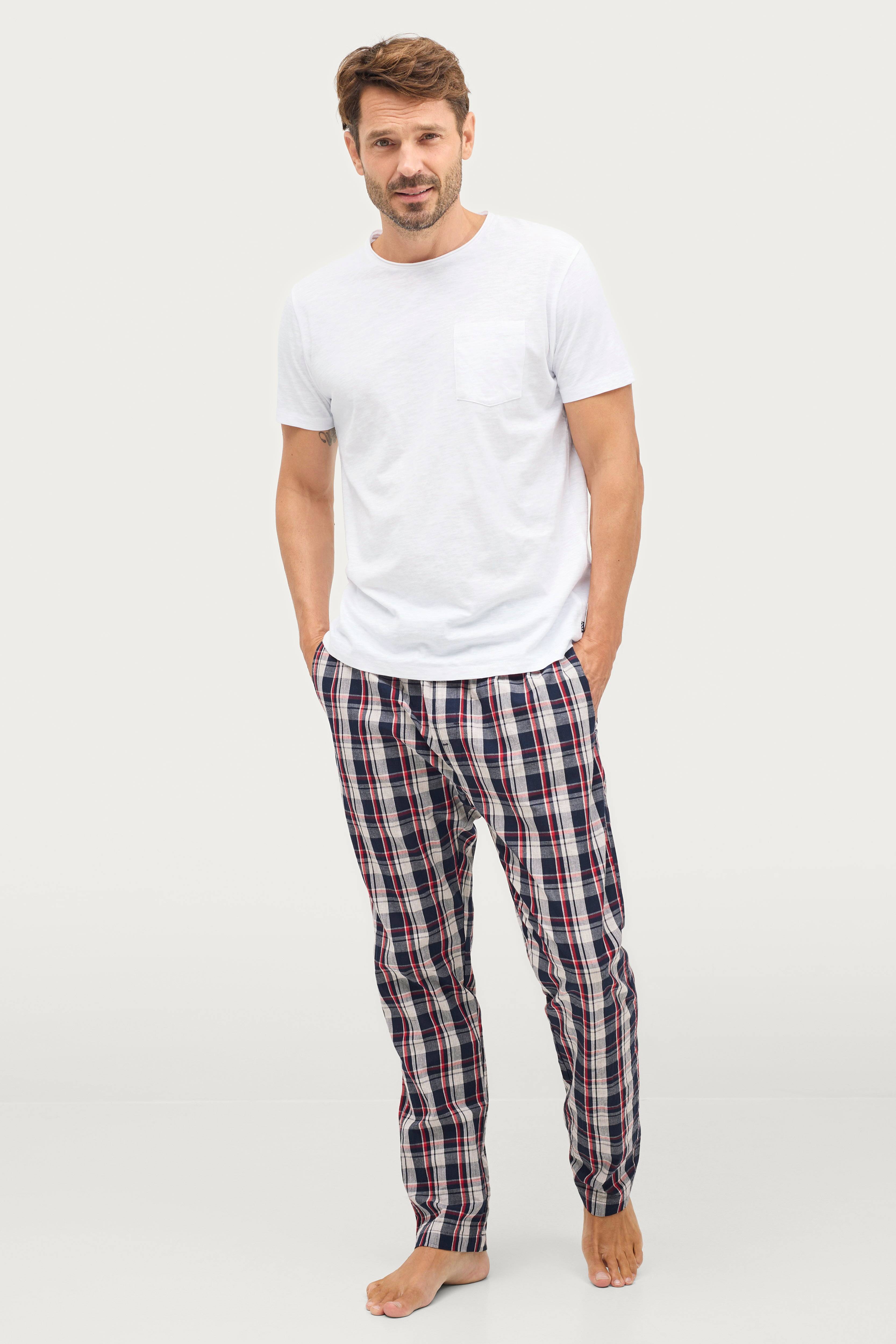 • Ternete natbukser i bomuldspoplin