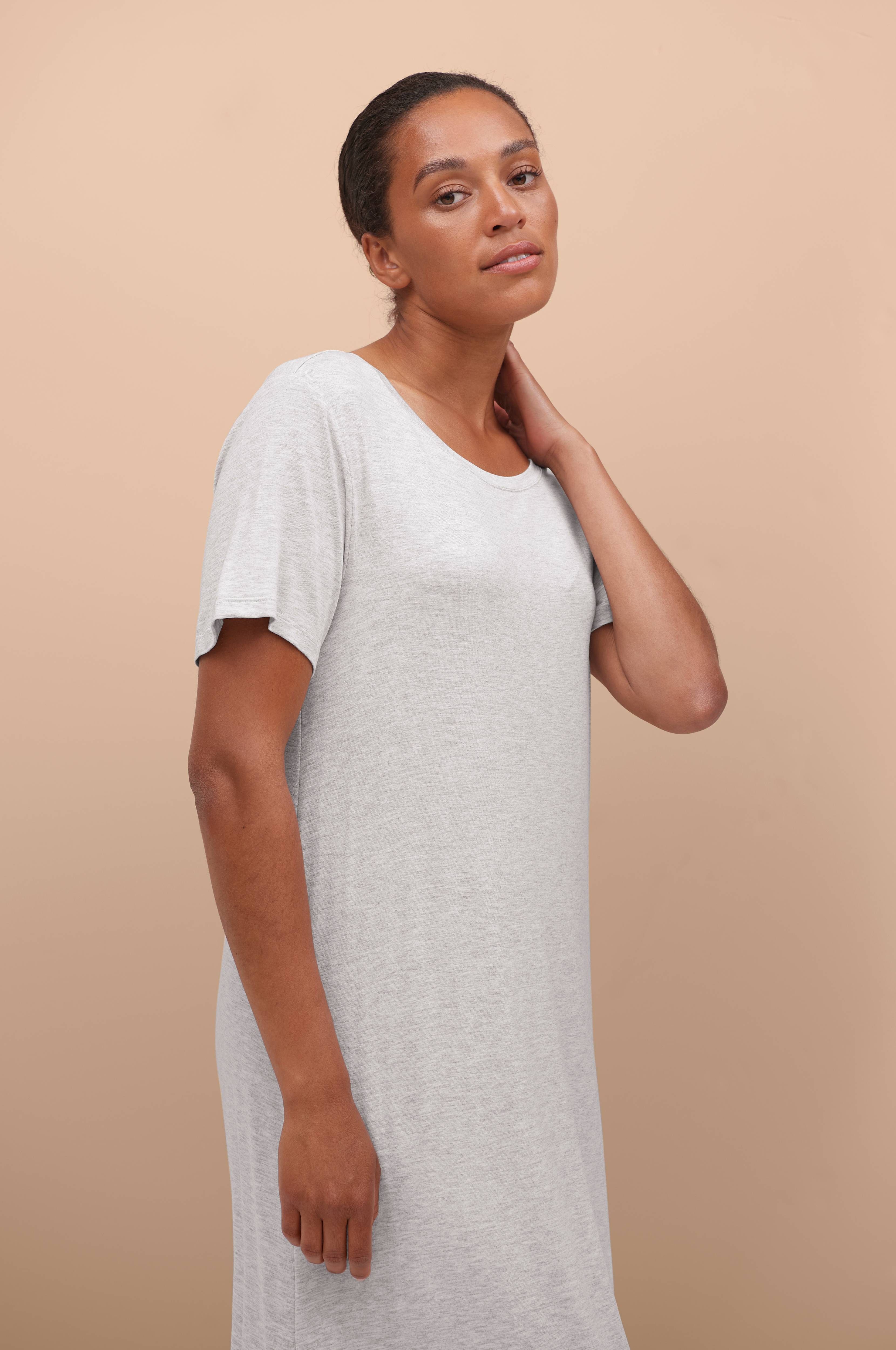Kortærmet natkjole i blød viskosejersey med stretch. Rund hals med ribkant. Slidser forneden i siderne. Længde ca. 115 cm i str. 34/36.