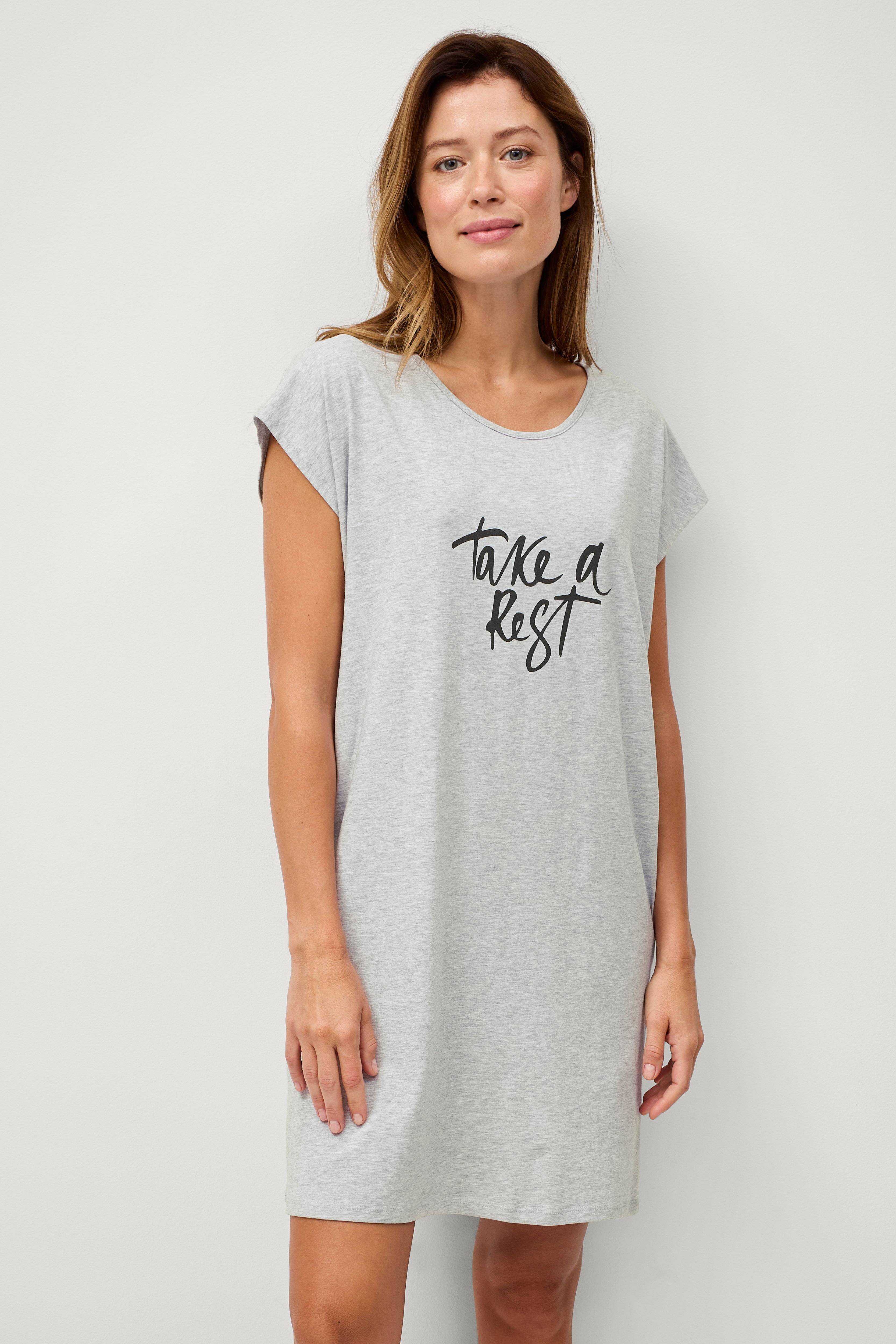 • Kortærmet natkjole i blød, elastisk bomuld• Rund halsudskæring• Tryk foran