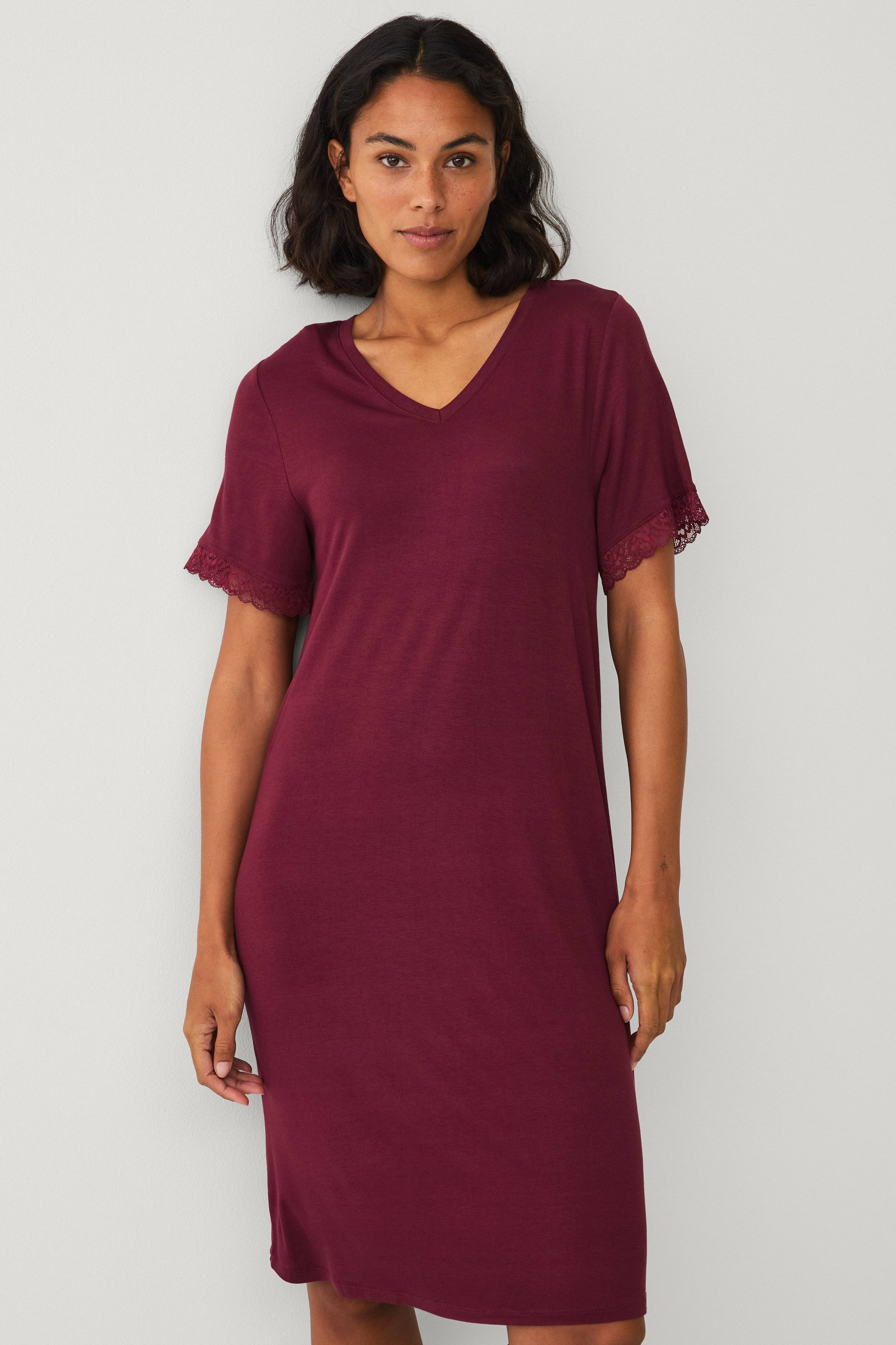 Dejligt stof i natkjolen, behagelig at have på, lige tilpas lang til mig, til knæet. Må købe flere, overvejer også som julegave til svigermor.