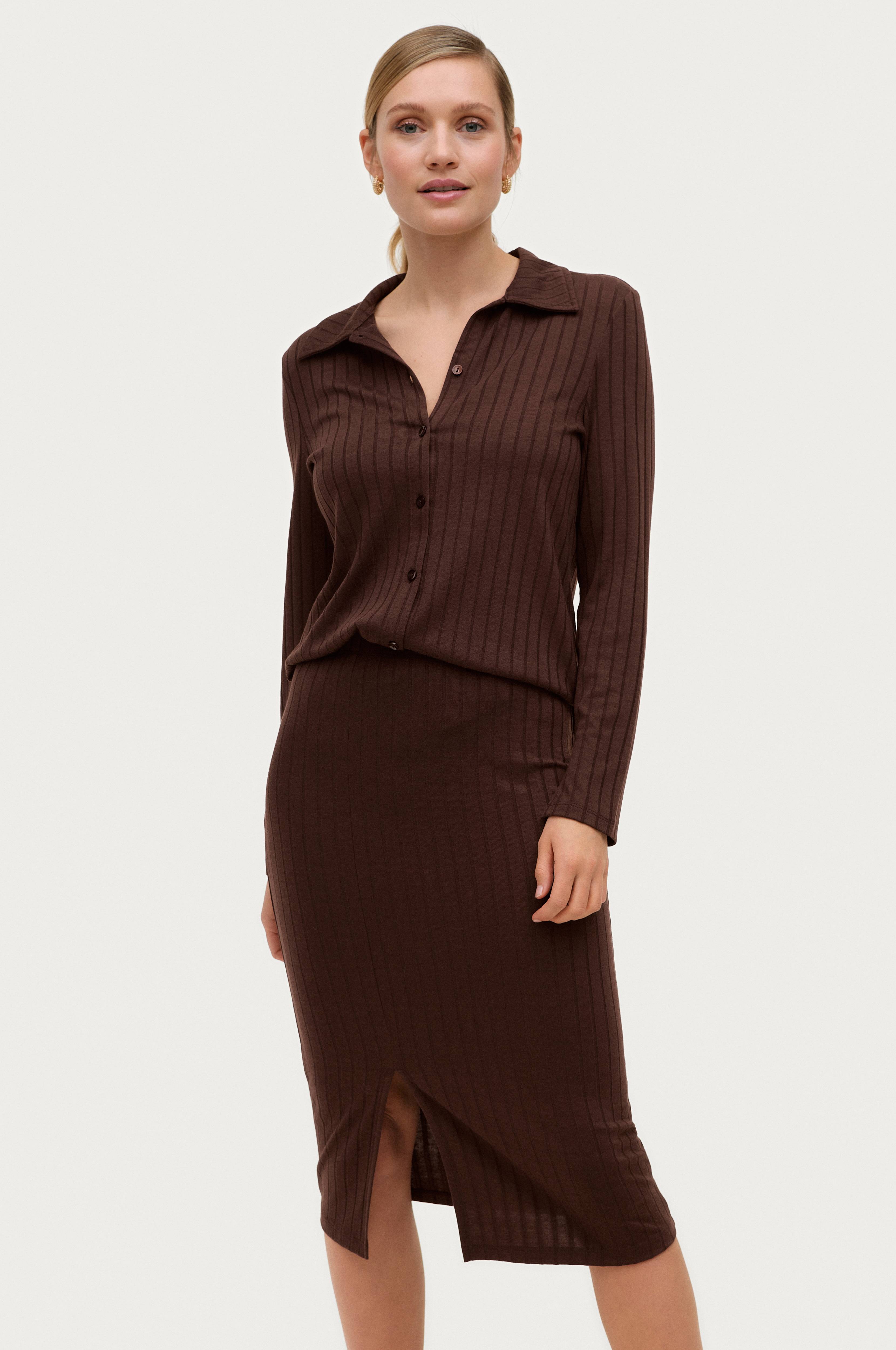 • Lige model• Elastisk talje• Slids foran• Blødt, ribbet materiale med stræk• Længde: 72 cm i størrelse 34/36