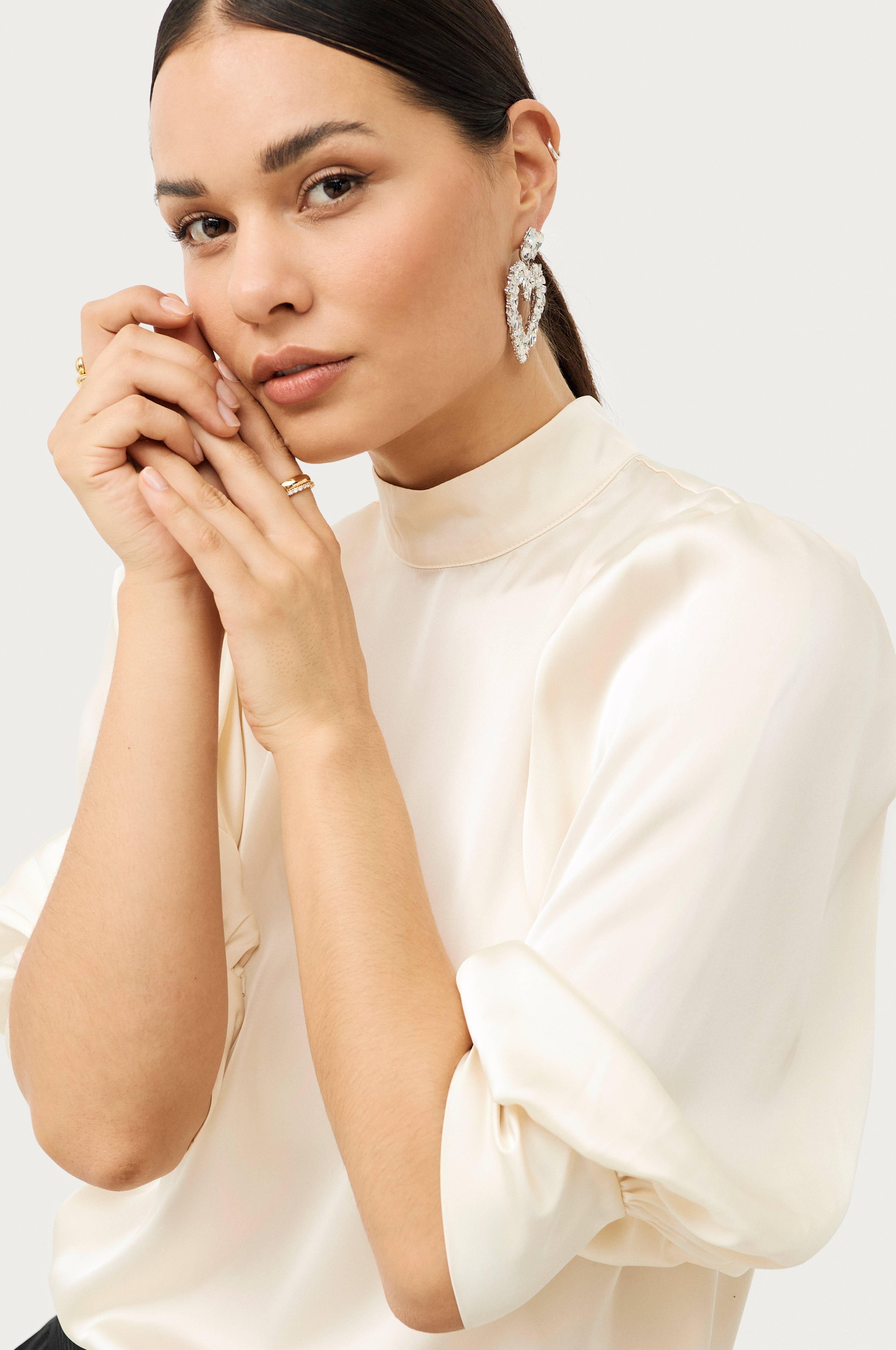 Stiftøreringe med store hjerter i similisten.Bredde 50 mm, højde 60 mm.Af 75% zink og 25% glas.