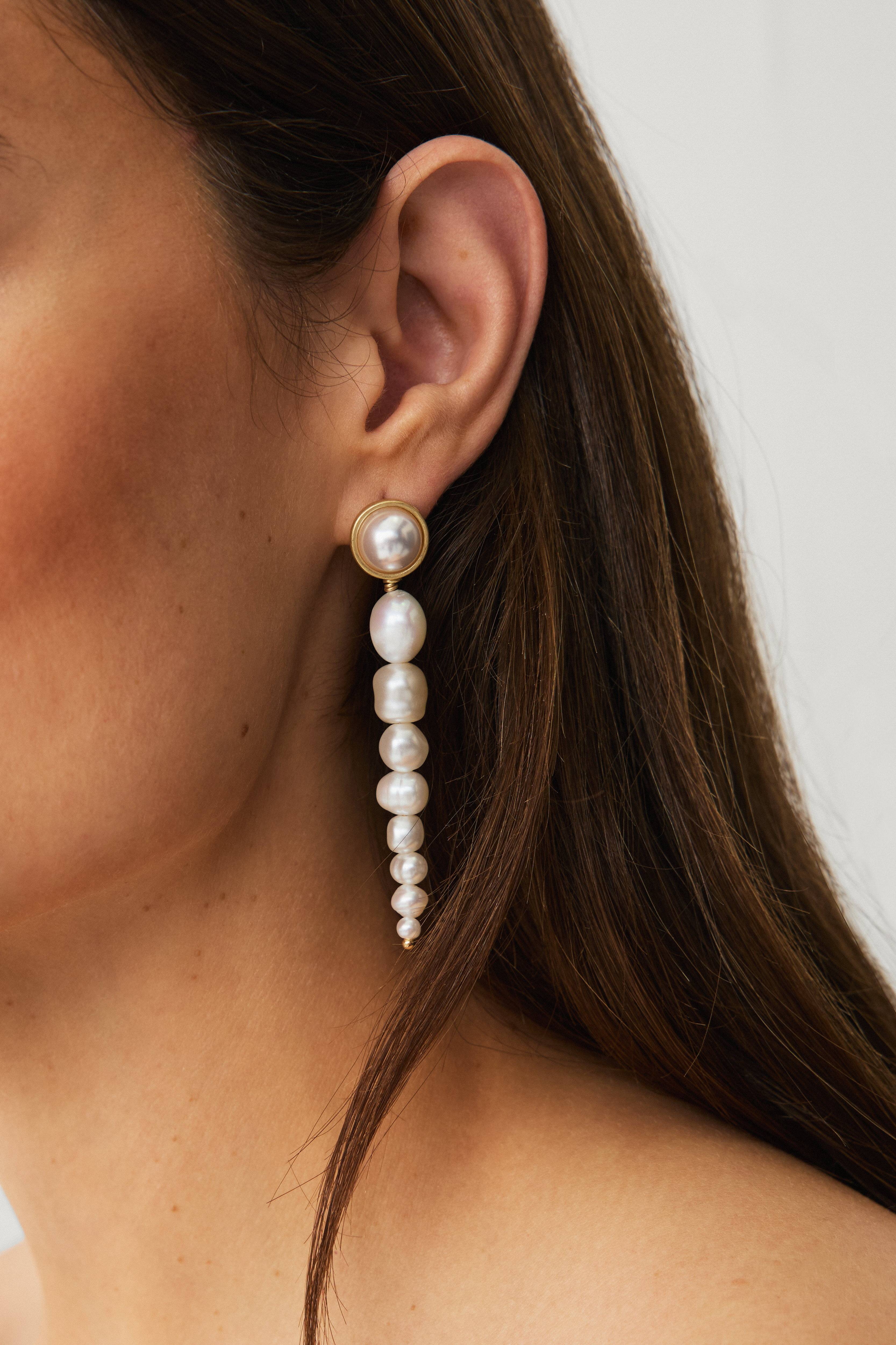 • Guldfarvede ørestikker i zink med ferskvandsperler• Nikkelfrier