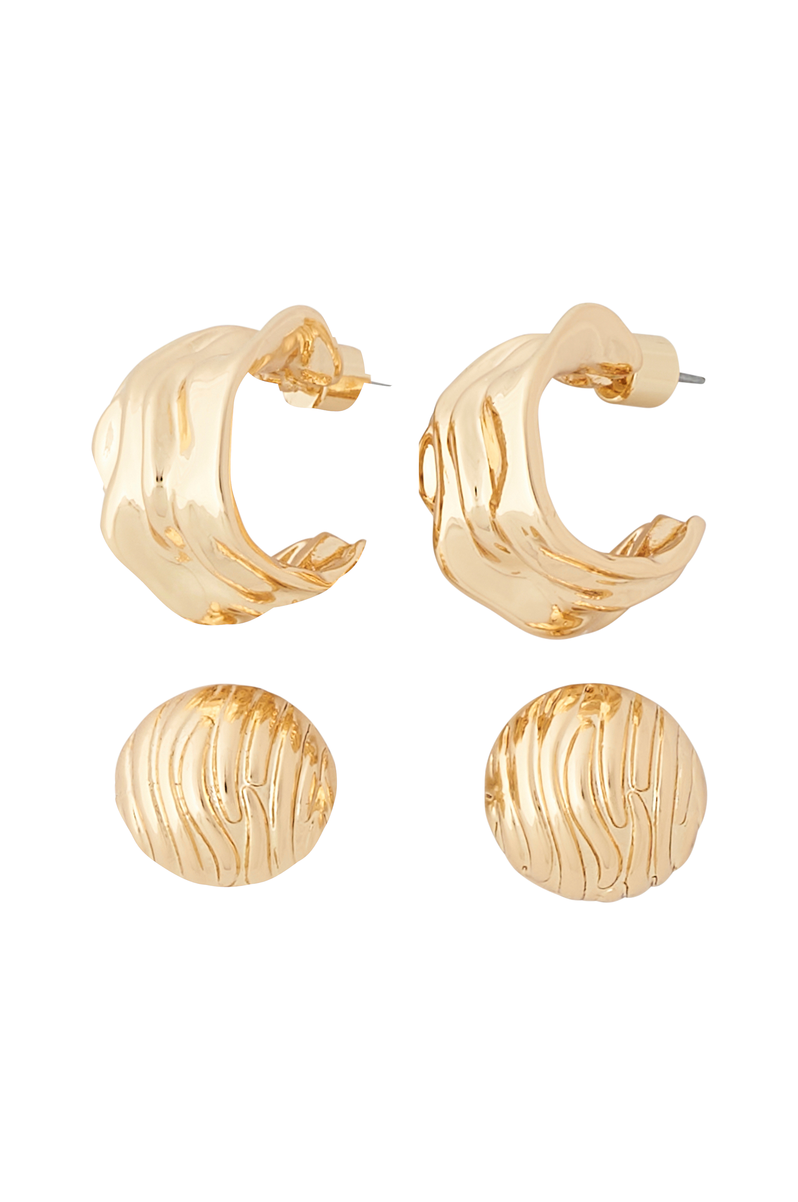 Sæt med 2 par ørestikker i forskellige størrelser og design.