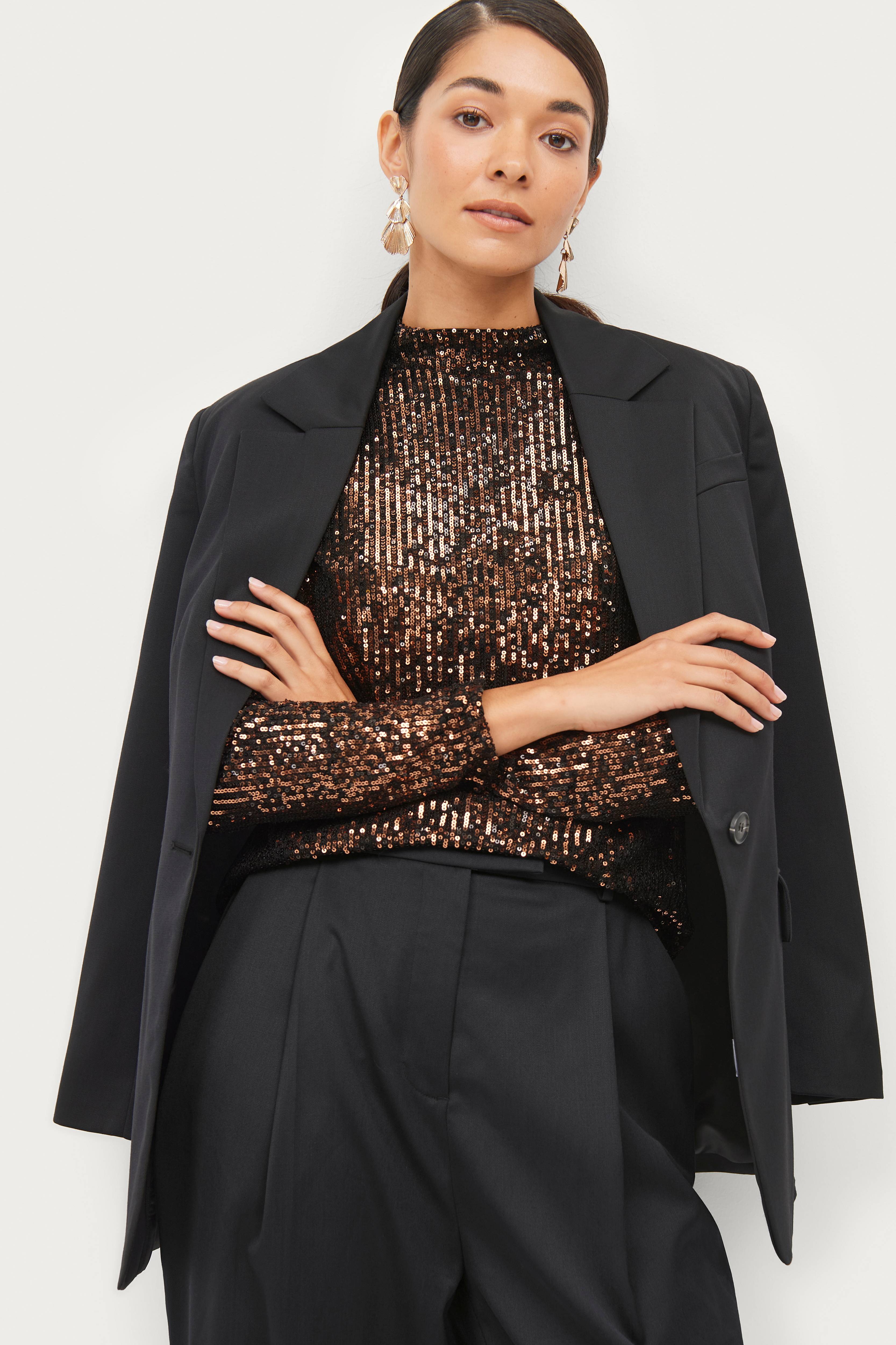 • Lange ærmer• Høj halsudskæring• Skjult lynlås bagpå• Fremstillet af meshtrikot med pailleter• For i jersey• Længde: 59 cm i størrelse 34/36