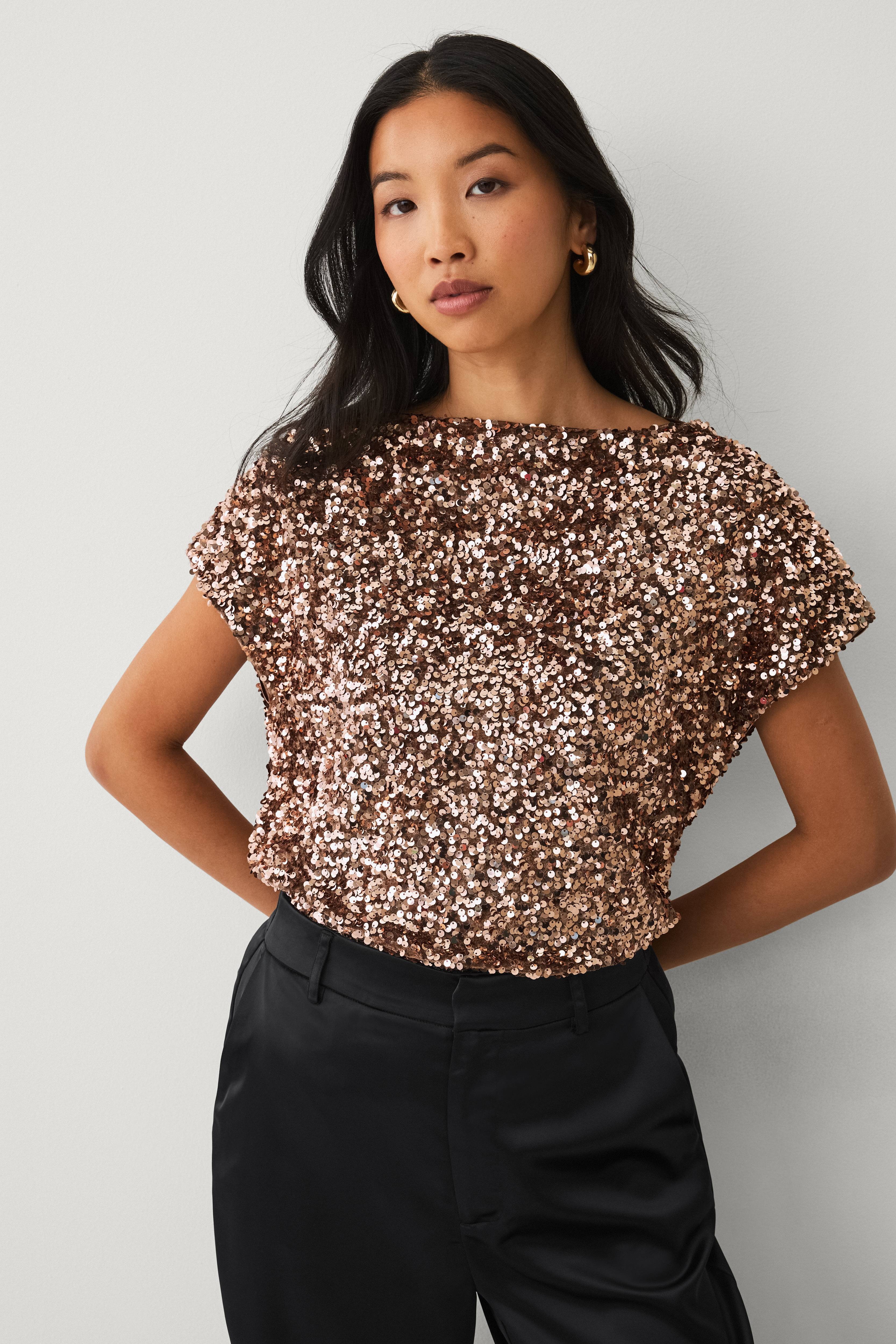 • Ærmeløs top i velour med broderede pailleter overalt• Bred halsudskæring• Foret inderside• Længde: 55 cm i størrelse S