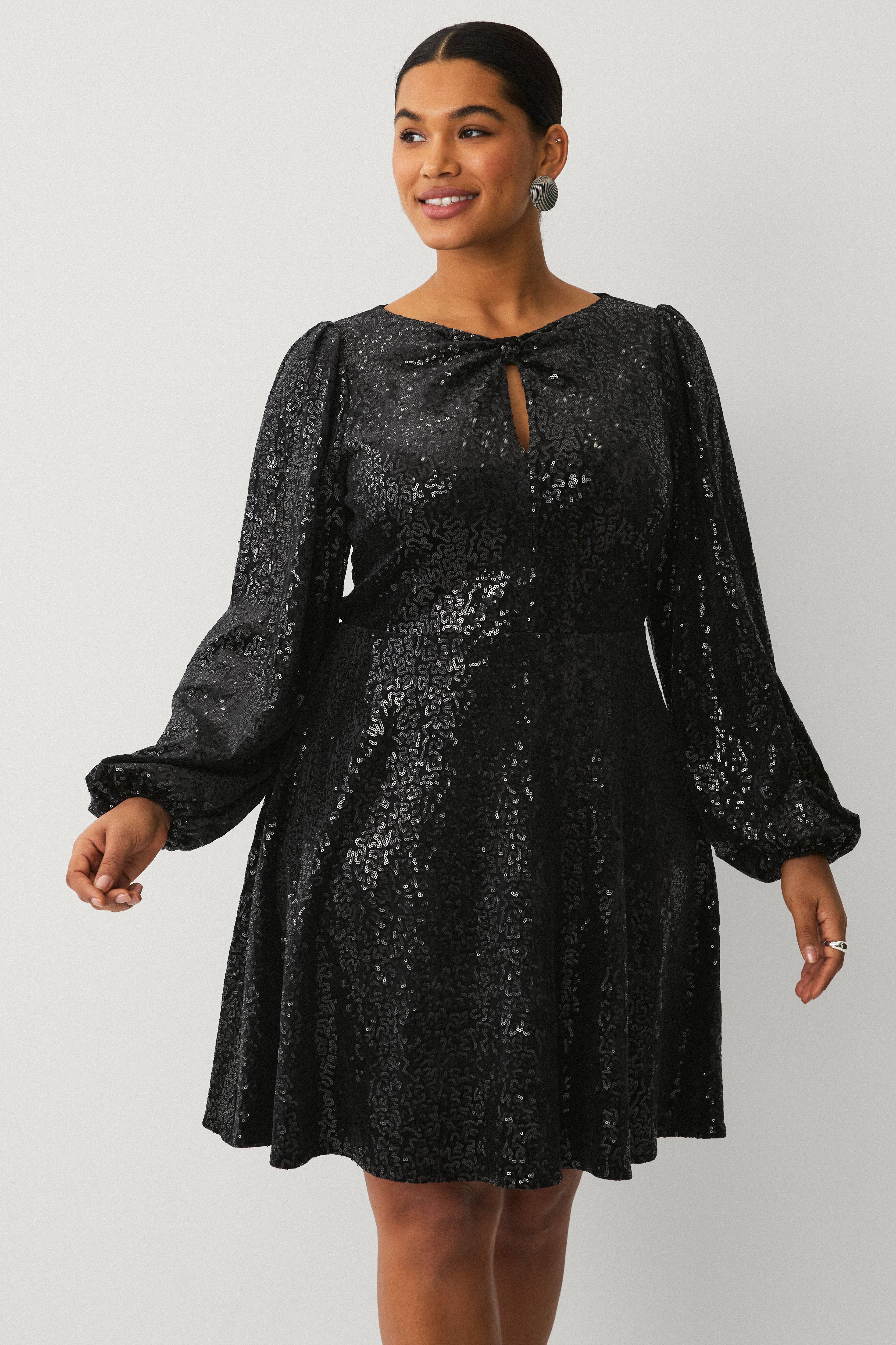 • Model med svaj med broderede pailleter overalt • Bred halsudskæring med drapering foran • Ekstra langt, bredt ærme med elastik ved manchetterne • Defineret talje • Foret • Længde: 96 cm i størrelse 42/44 • Dette produkt er en del af Ellos eksklusive kollektion i samarbejde med Linda-Marie Assergård.