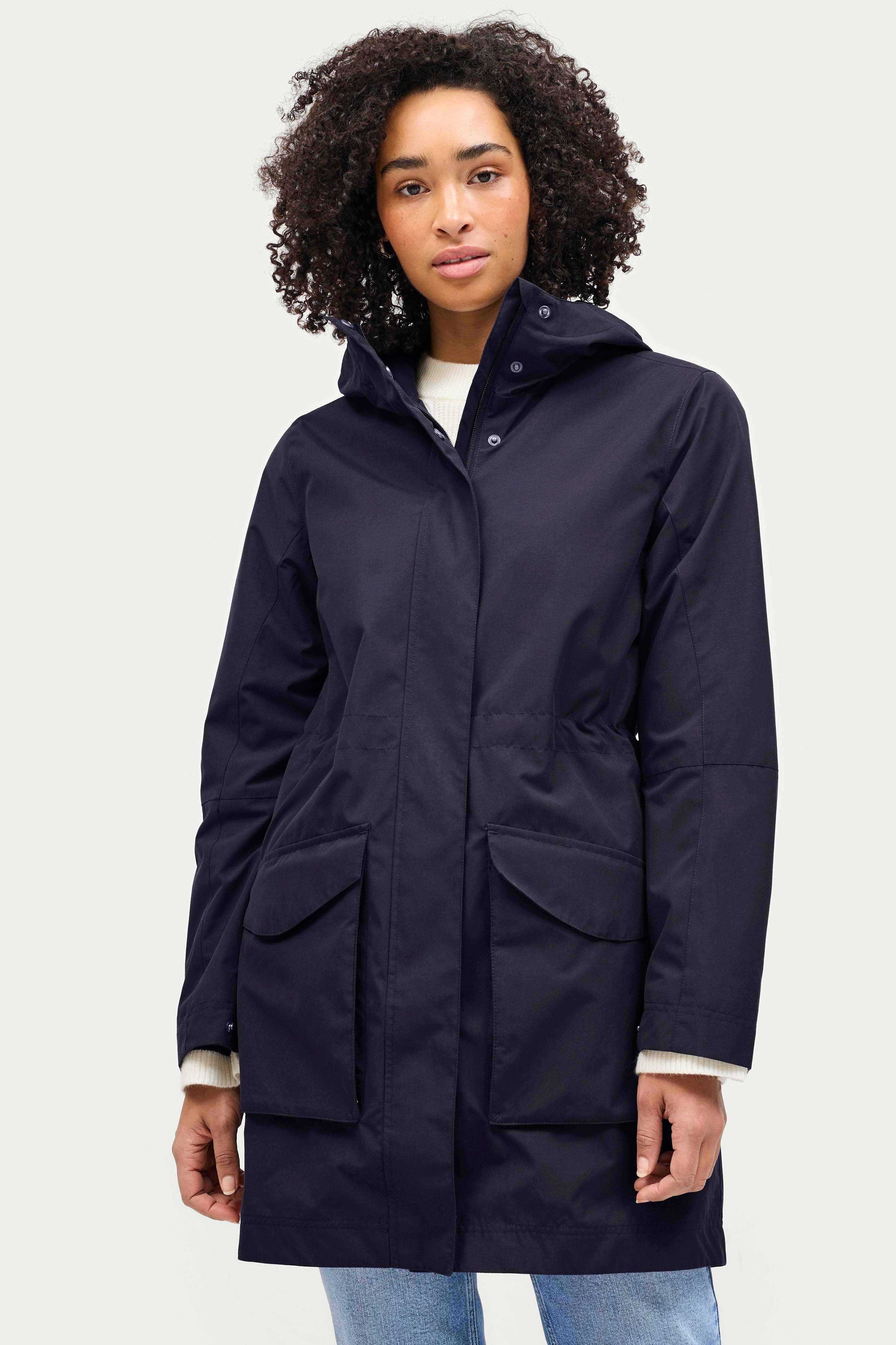 Jeg købte denne jakke, fordi jeg ønskede en tyndere forårsjakke. Jakken er tyndere, men har stadig et for. Jeg kan godt lide, at den på mig, som er 163 cm høj, går lidt længere ned på bene…