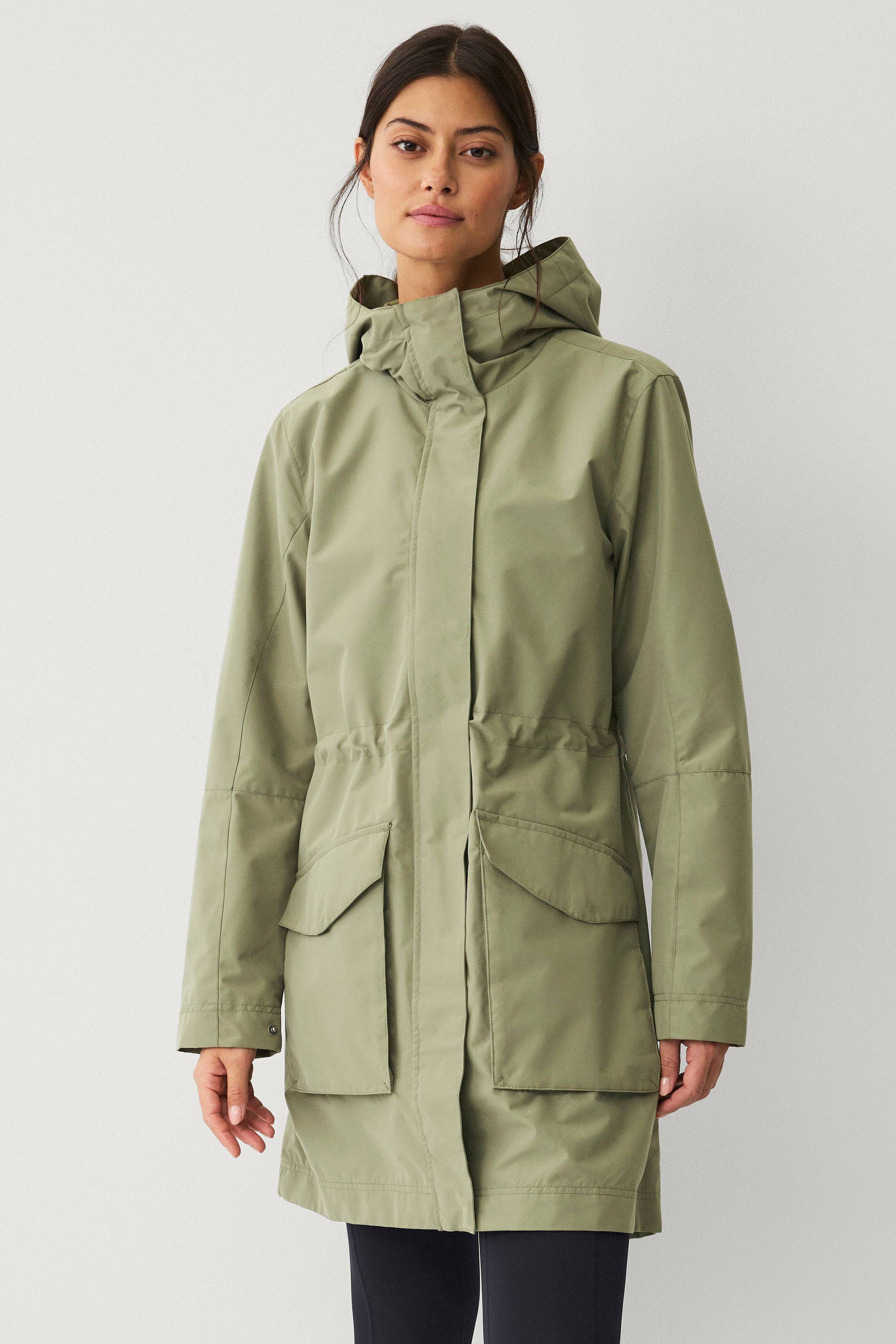 Jeg købte denne jakke, fordi jeg ønskede en tyndere forårsjakke. Jakken er tyndere, men har stadig et for. Jeg kan godt lide, at den på mig, som er 163 cm høj, går lidt længere ned på bene…