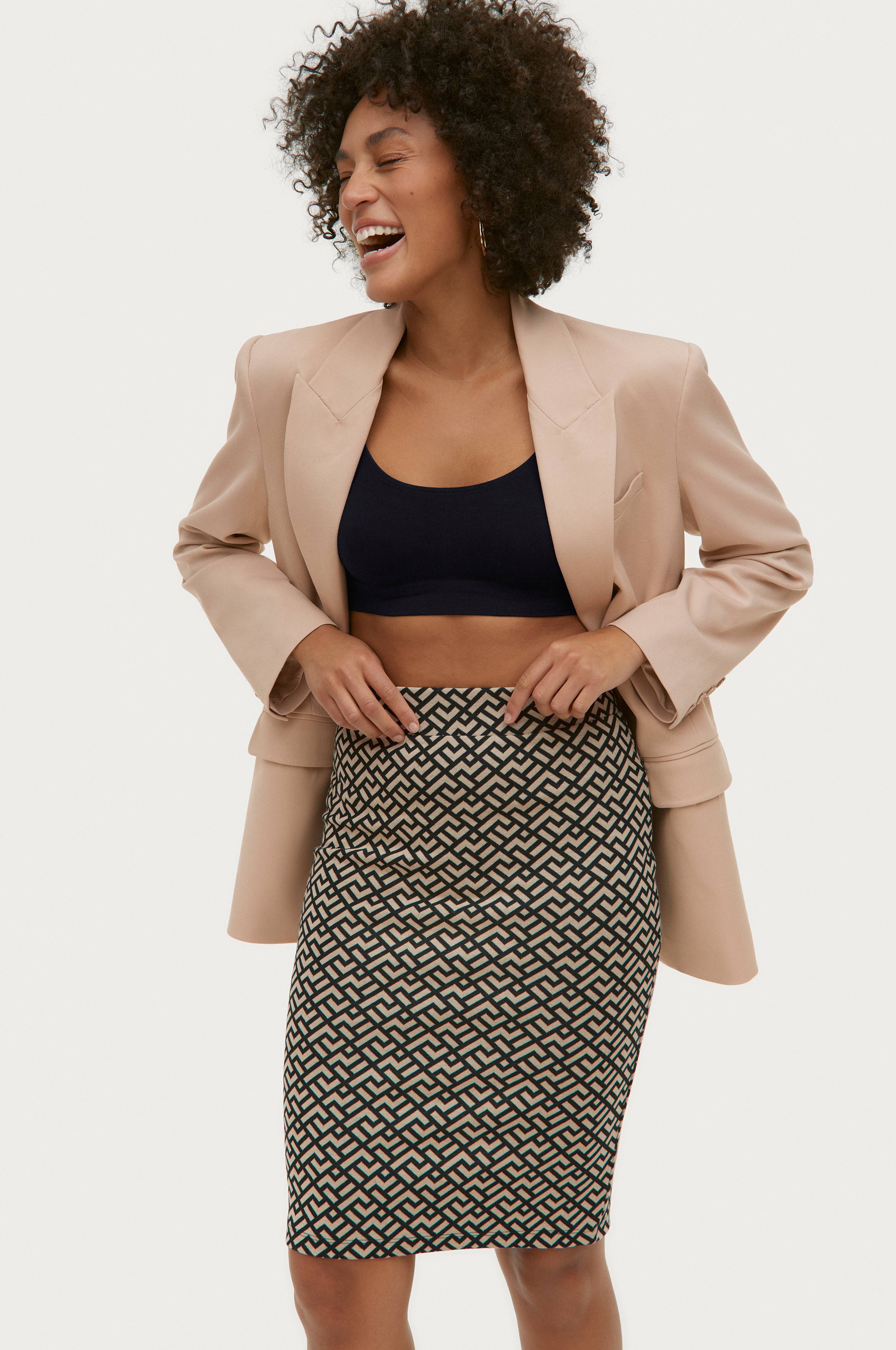Er meget tilfreds med den elastiske fine mønstrede nederdel.