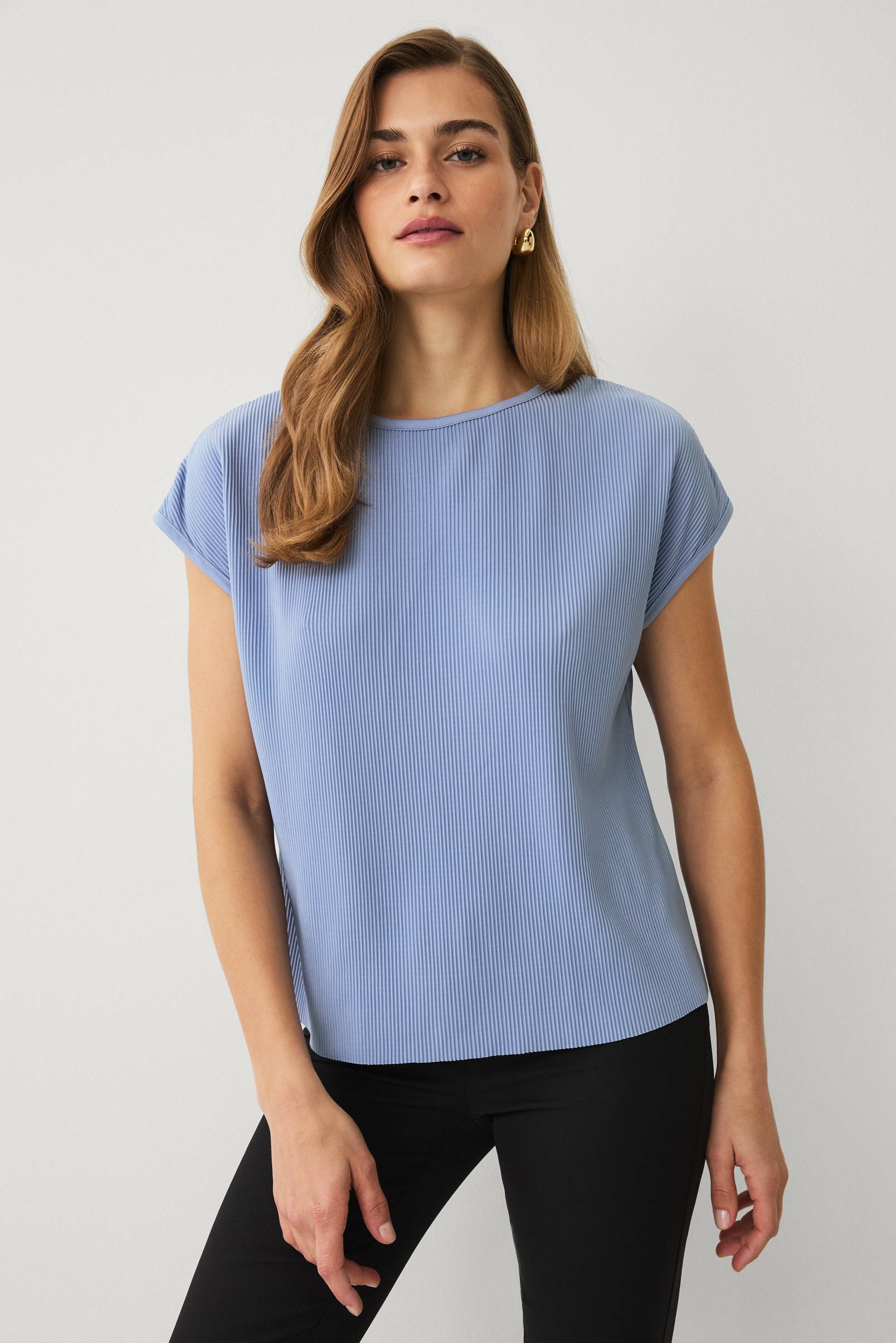 • Top i luftig polyester med bølgeformet struktur • Korte arme • Dekorativ, smal kant ved ærmeafslutningerne og rundt om halsudskæringen • Længde: 58 cm i størrelse S