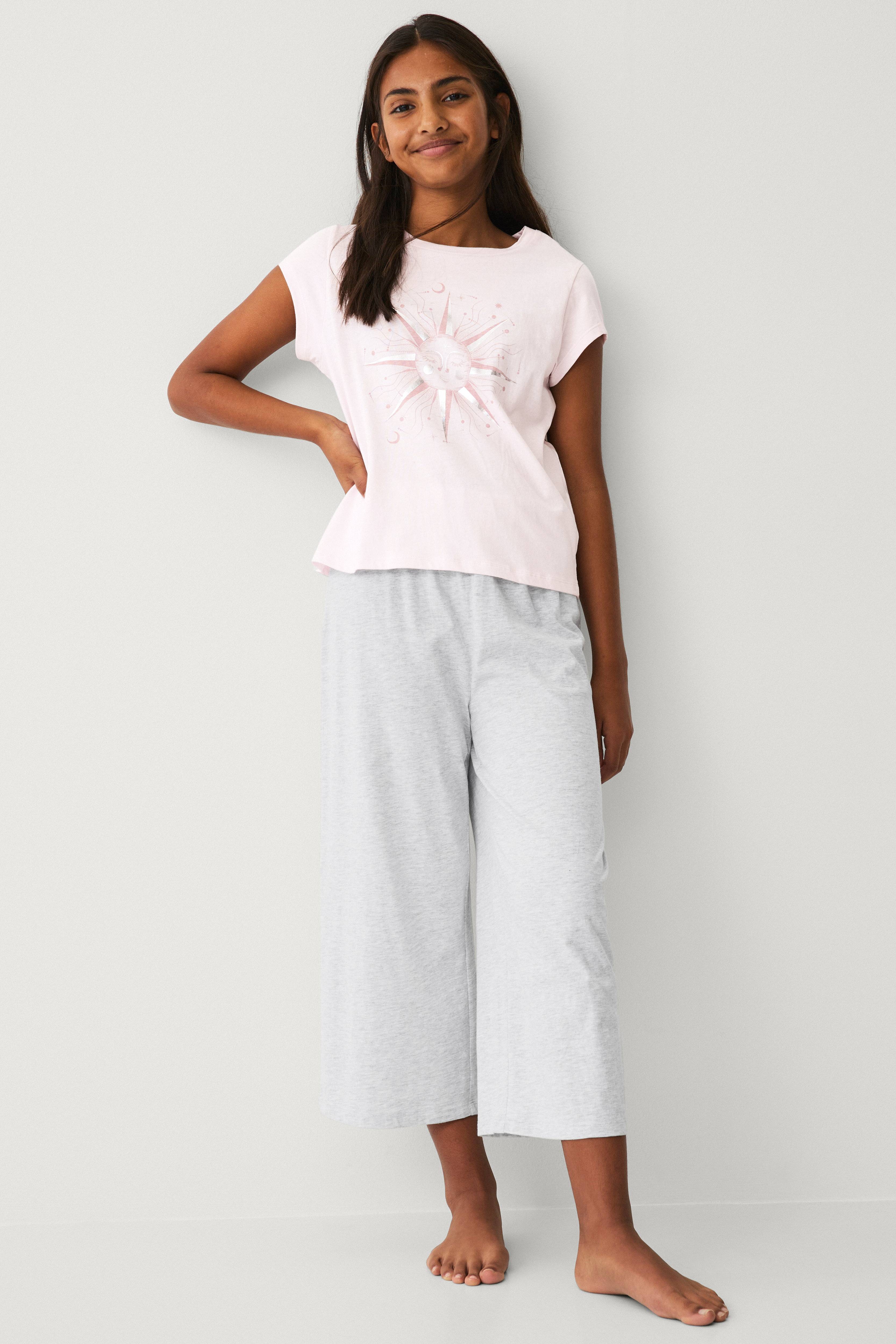• Todelt sæt i bomuldsjersey • Kortærmet top med tryk foran • Brede bukser med elastisk talje • Ellos samarbejder med Better Cotton for at forbedre bomuldsdyrkningen globalt. Better Cotton er en global nonprofitorganisation, der underviser bomuldsdyrkere i metoder til mere bæredygtig bomuldsdyrkning og arbejder for mere effektiv brug af vand og reduceret brug af pesticider. Better Cotton bringer forbedrede sociale, økonomiske og miljømæssige forhold for bomuldsbønder. Ved at vælge vores bomuldsprodukter støtter du vores investering i Better Cottons mission. Better Cotton er fremskaffet via et system med massebalance og kan ikke fysisk spores til slutprodukter. Besøg bettercotton.org/learnmore for mere information om Better Cotton.