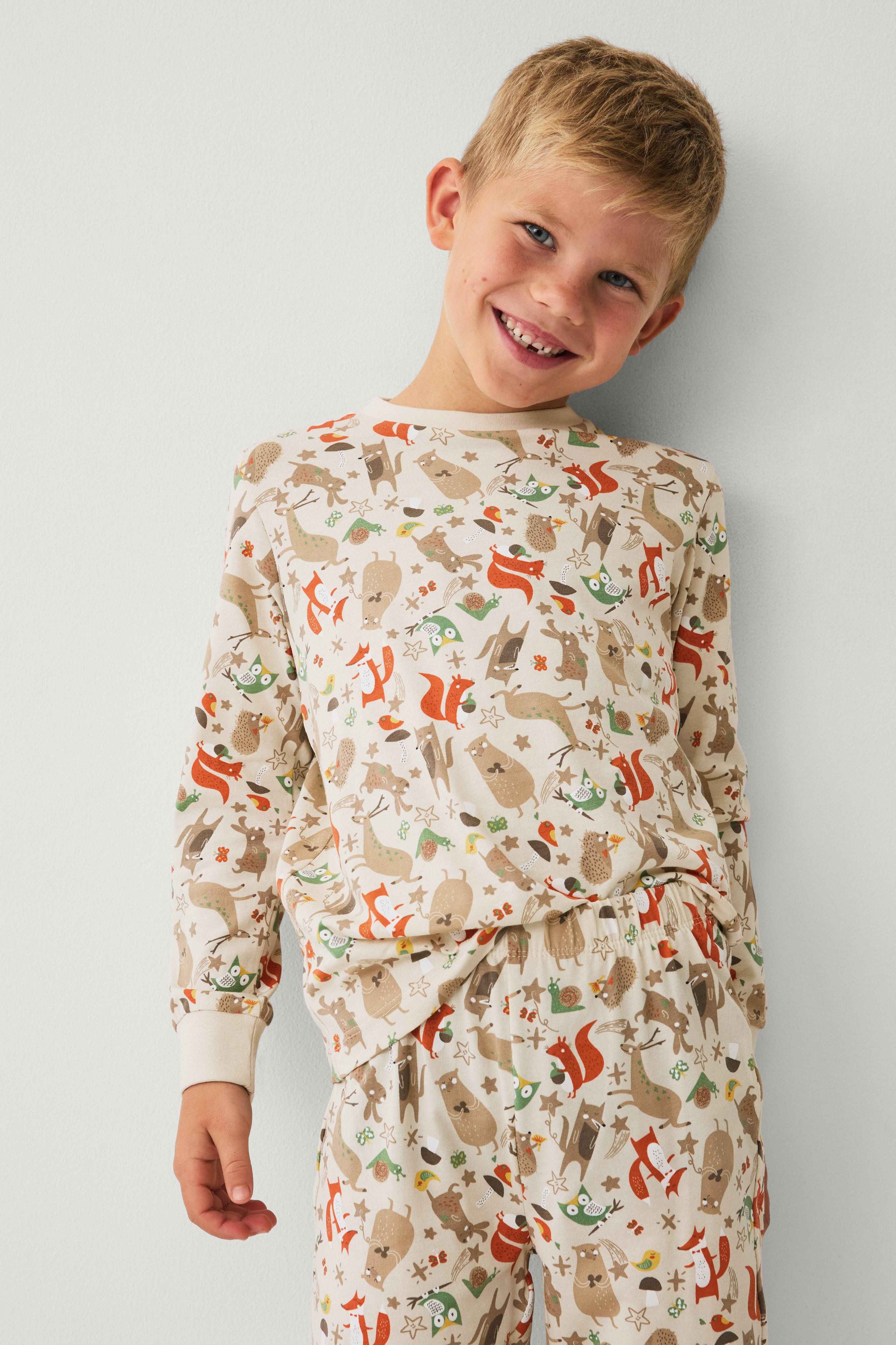 • Pyjamas i bomuldsjersey med printet mønster overalt• Langærmet t-shirt med rund halsudskæring og ribmanchetter ved manchetterne• Bukser med elastik ved taljen og ribmanchetter ved enden af benene