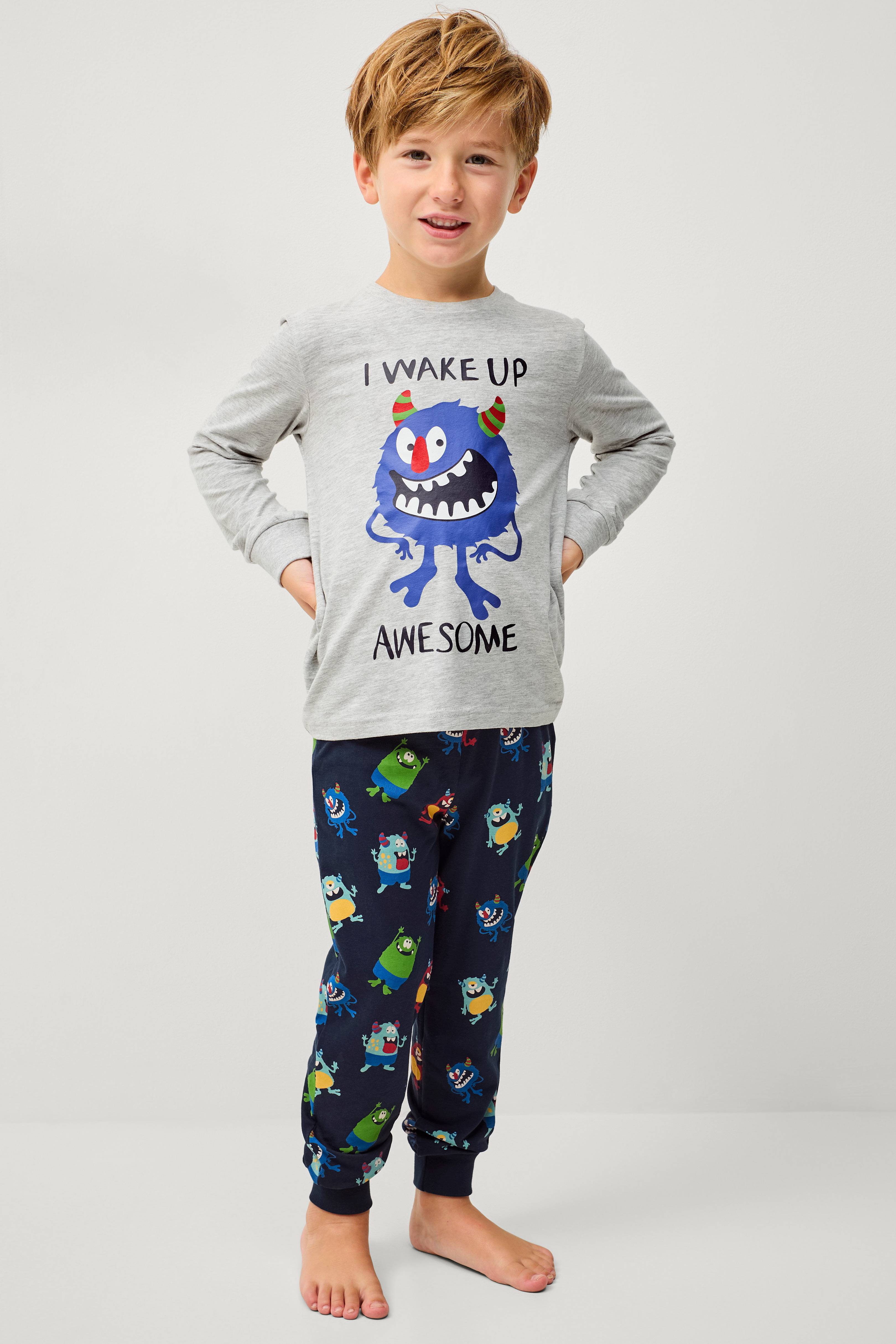 • 2-delt pyjamassæt• Langærmet t-shirt• Rund halsudskæring• Manchetter ved manchetterne• Bukser med elastisk talje• Manchetter ved enden af benene