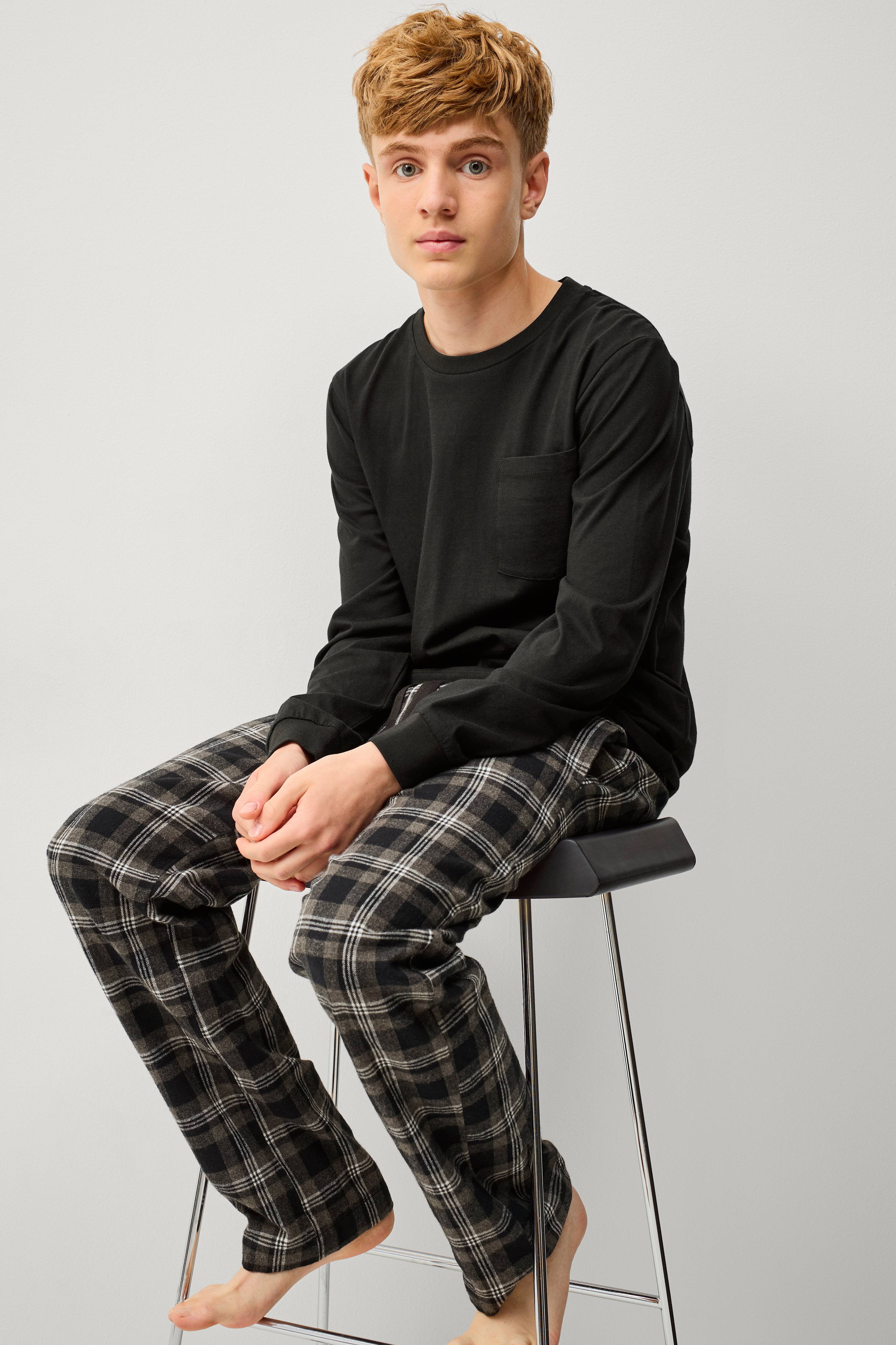 • Sæt• Langærmet top med rund hals og brystlomme• Bukser i flonel med lige ben og elastisk linning med træksnørre