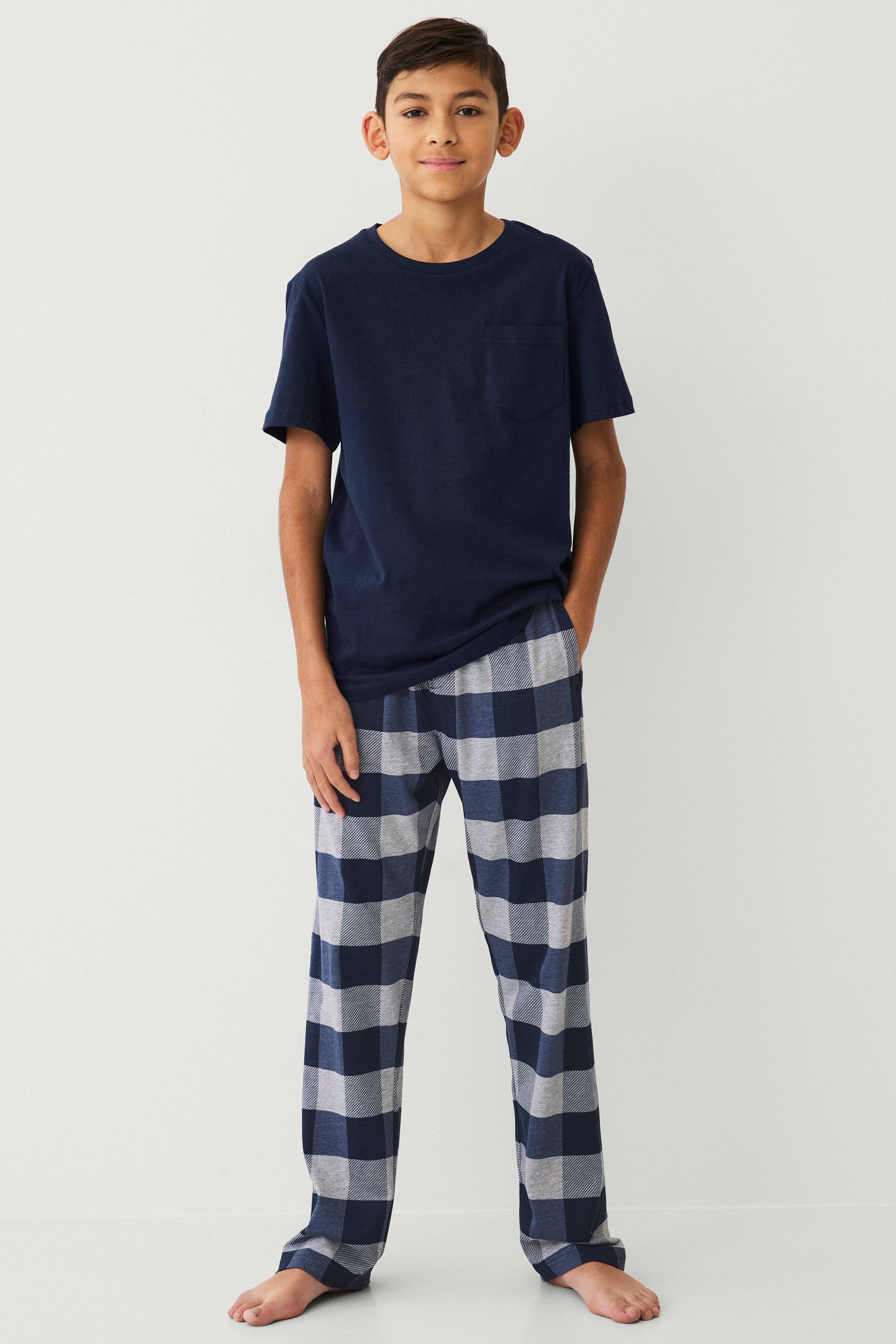 • Kortærmet top med rund hals og en brystlomme• Bukser med elastisk talje og træksnørre• Sidelommer• Lige ben