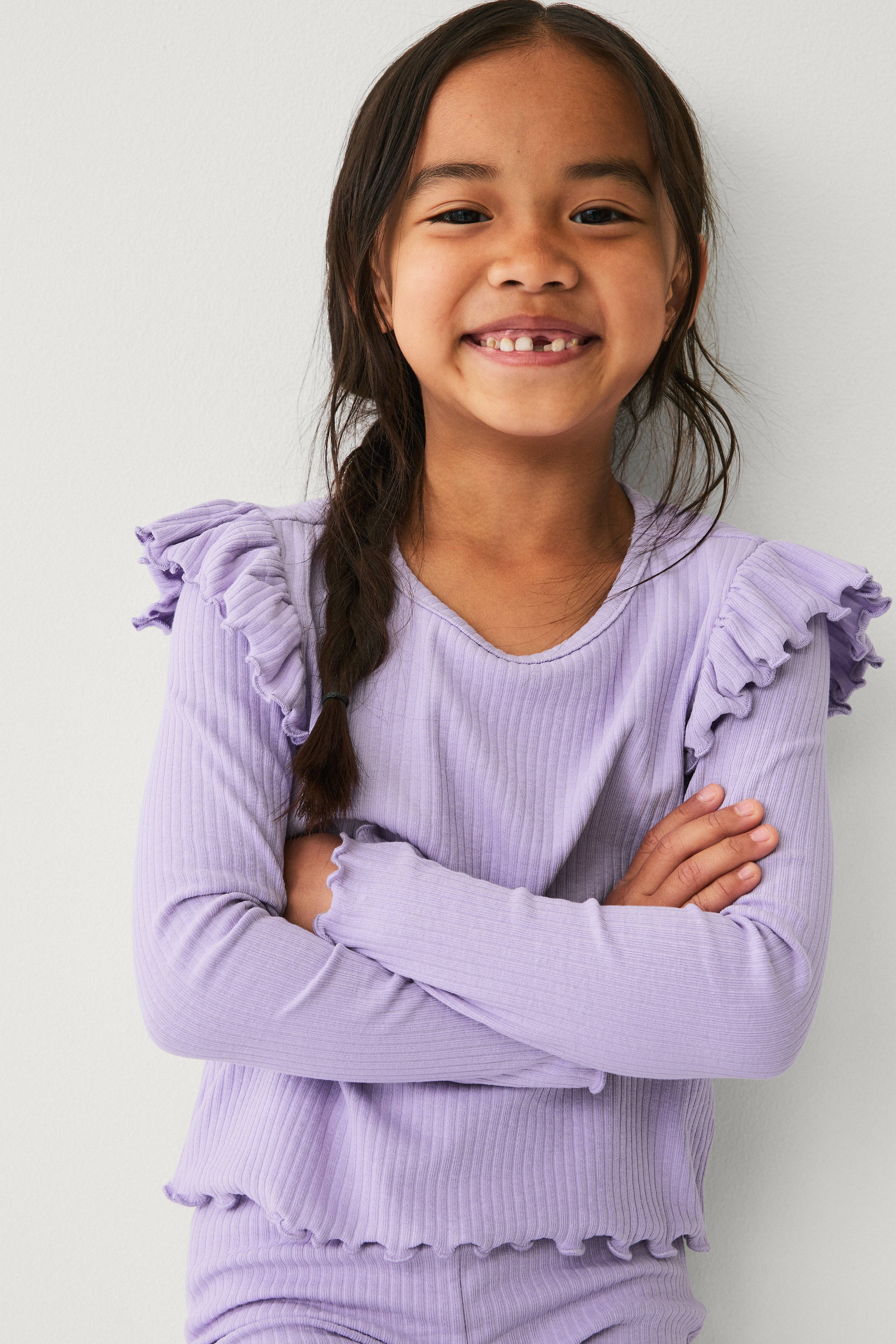 • Ribbet top med volanter over skuldrene