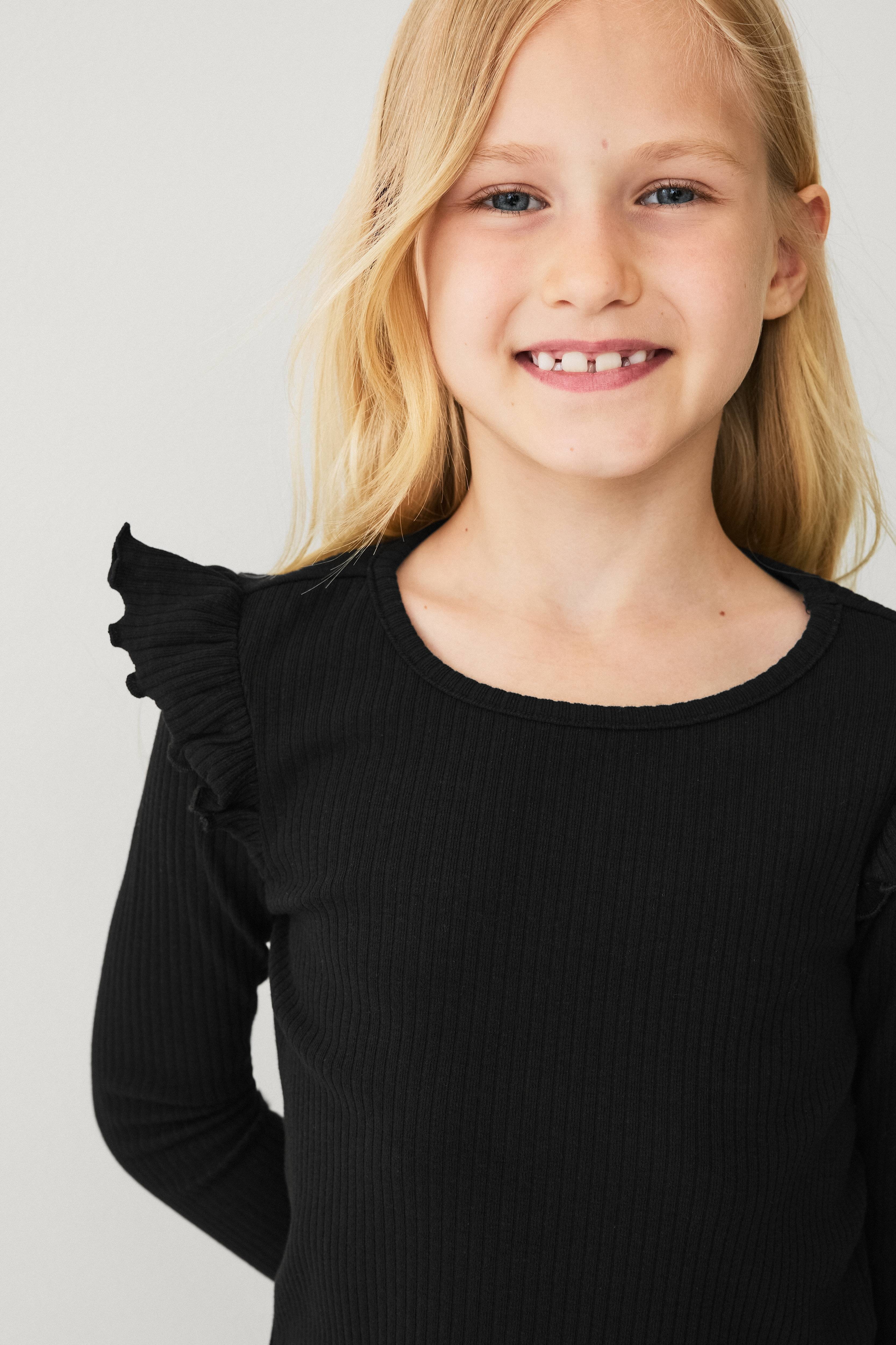 • Ribbet top med volanter over skuldrene