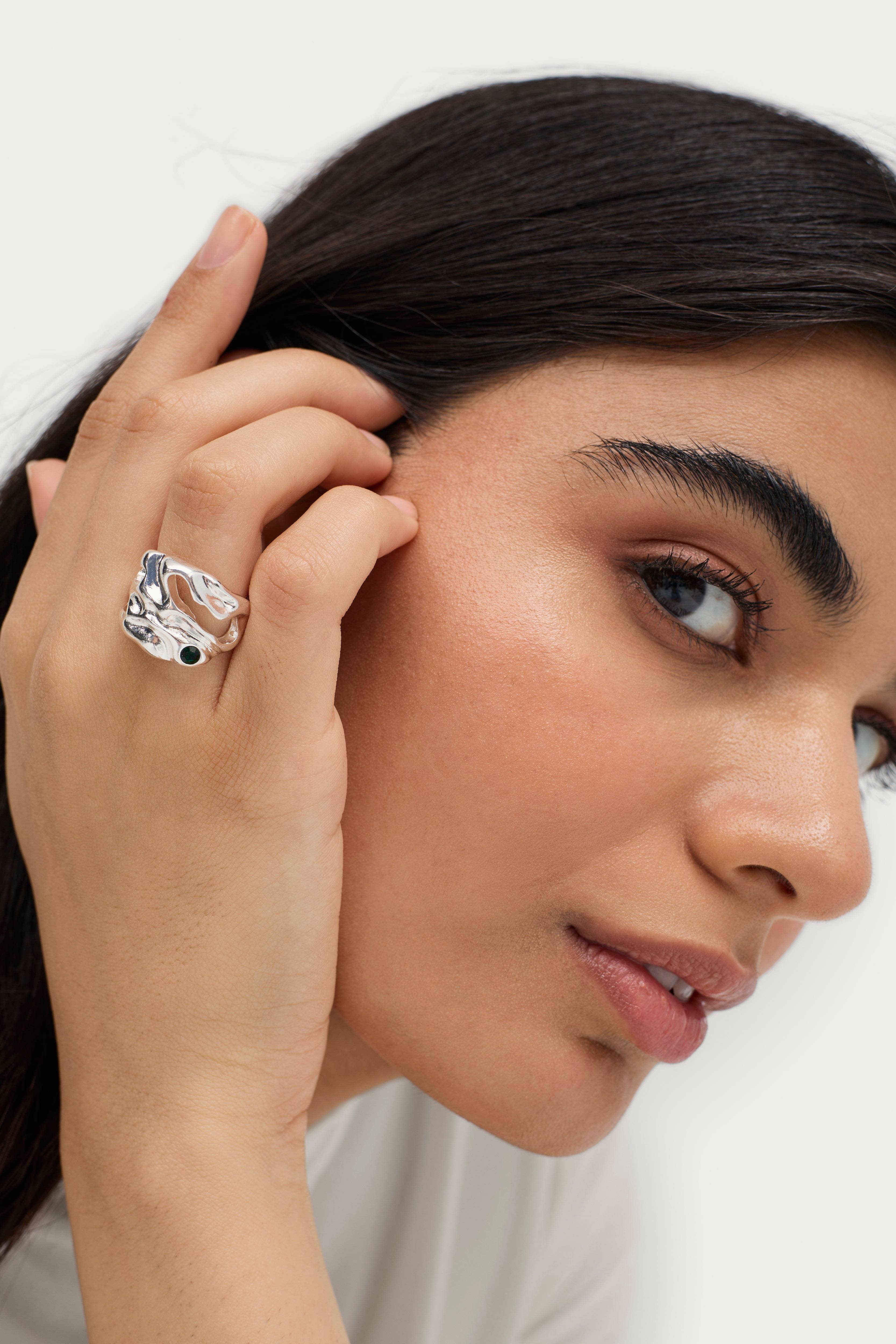 Bred ring med uregelmæssig overflade. Bredde ca. 2,8 cm.