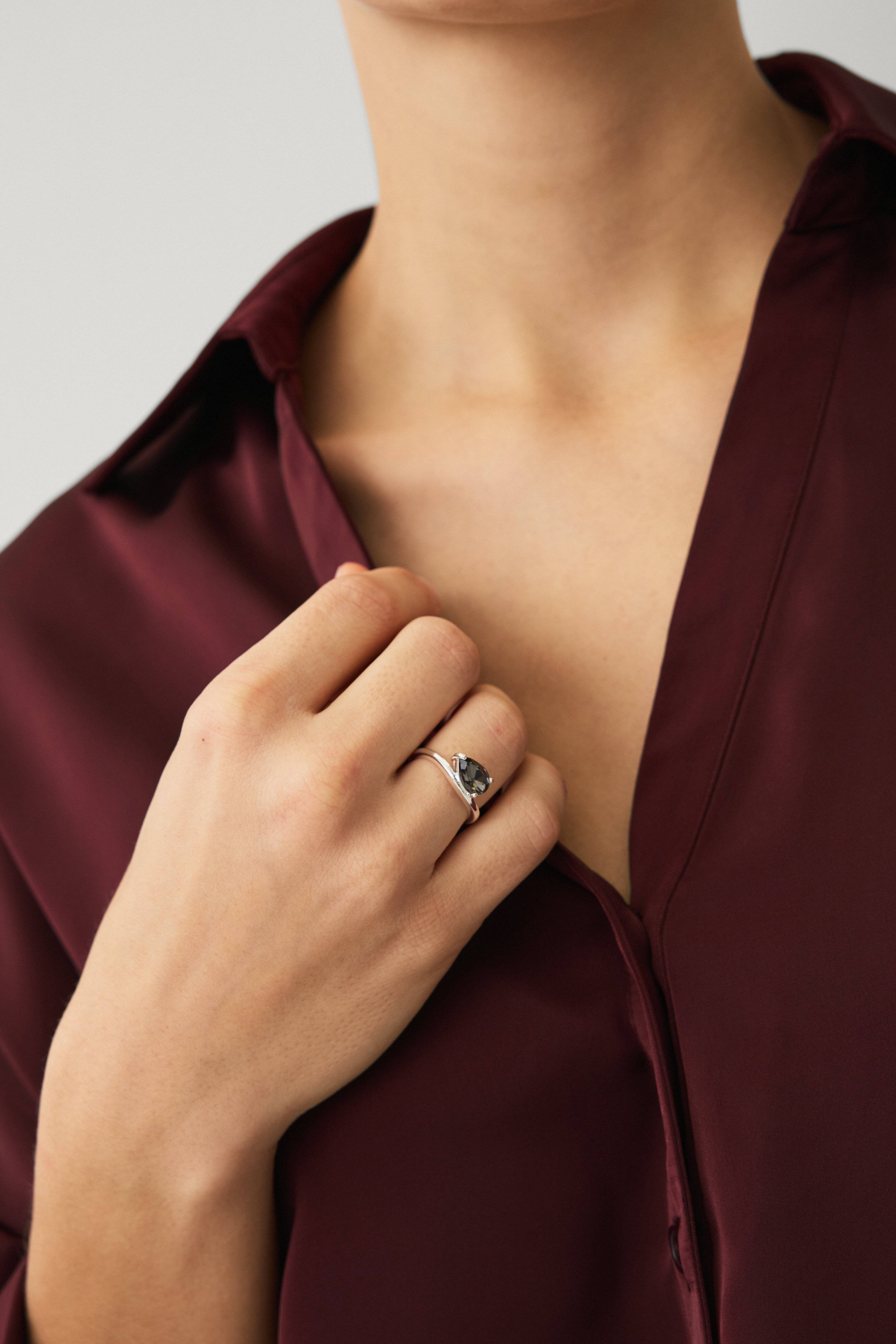 • Ring i messing• Dråbeformet sten i glas