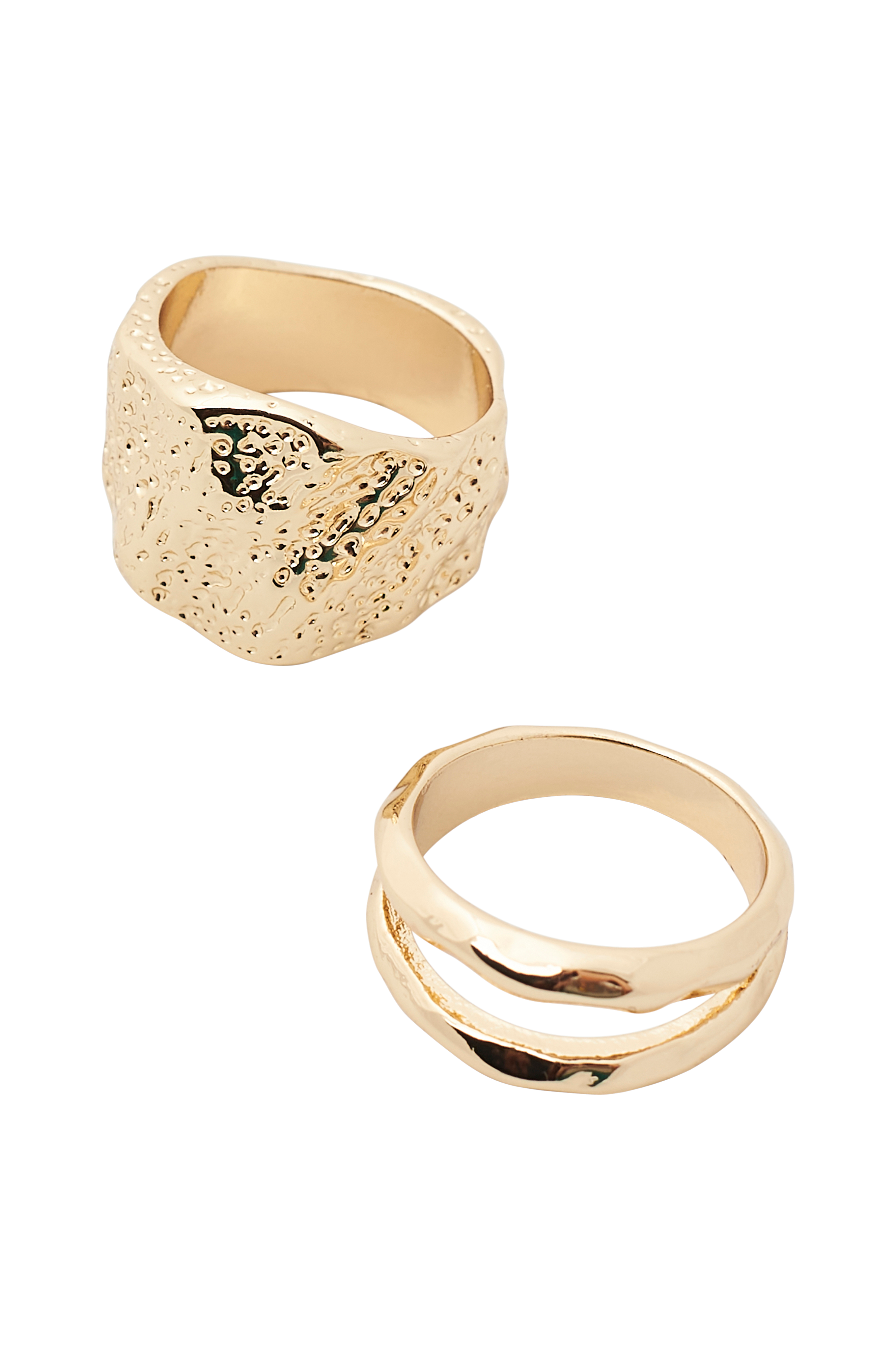 To brede ringe med uregelmæssig overflade. Bredde 1,6 cm og 0,9 cm.