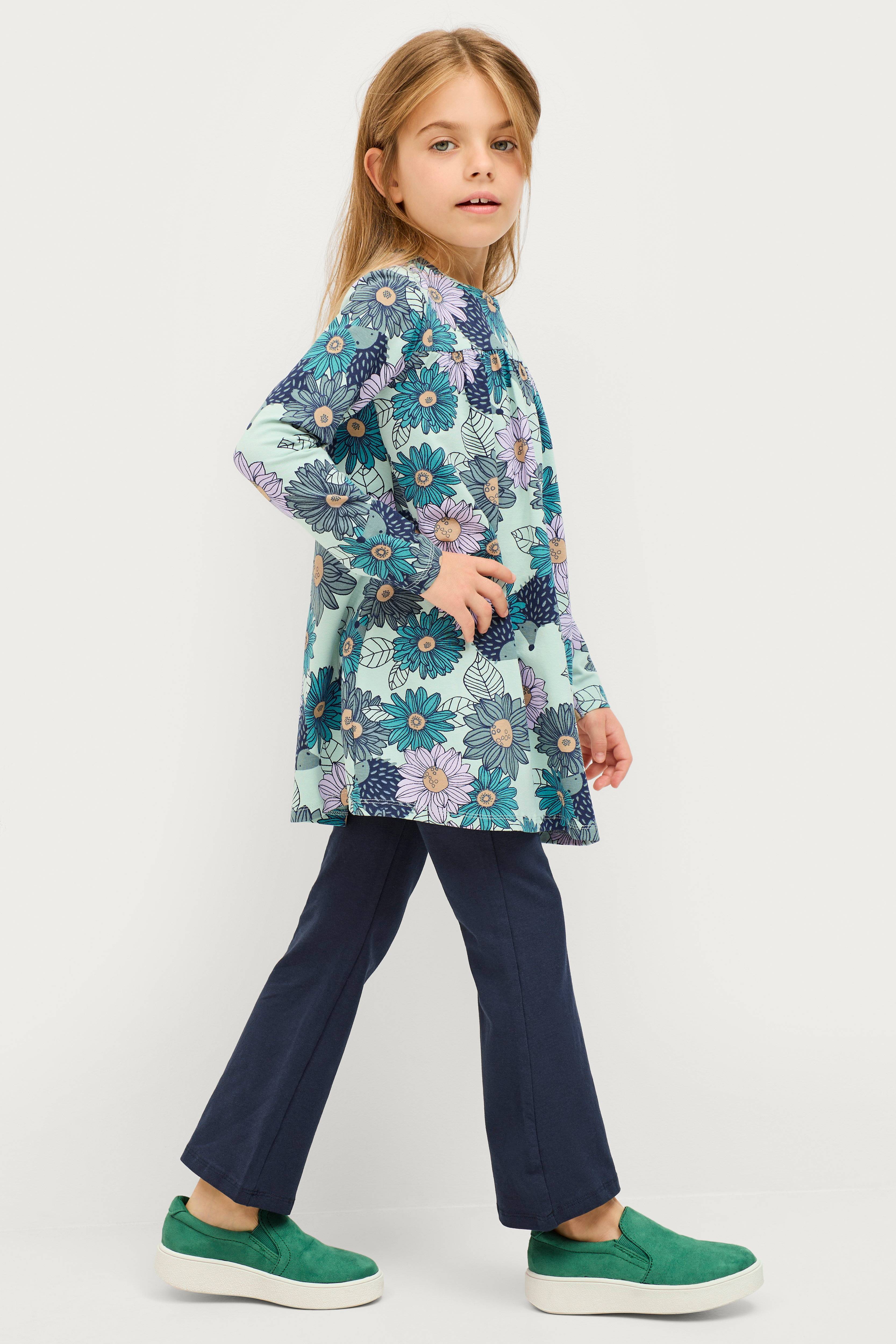 Modellen er 110,cm cm høj og bærer en str. 110/116
