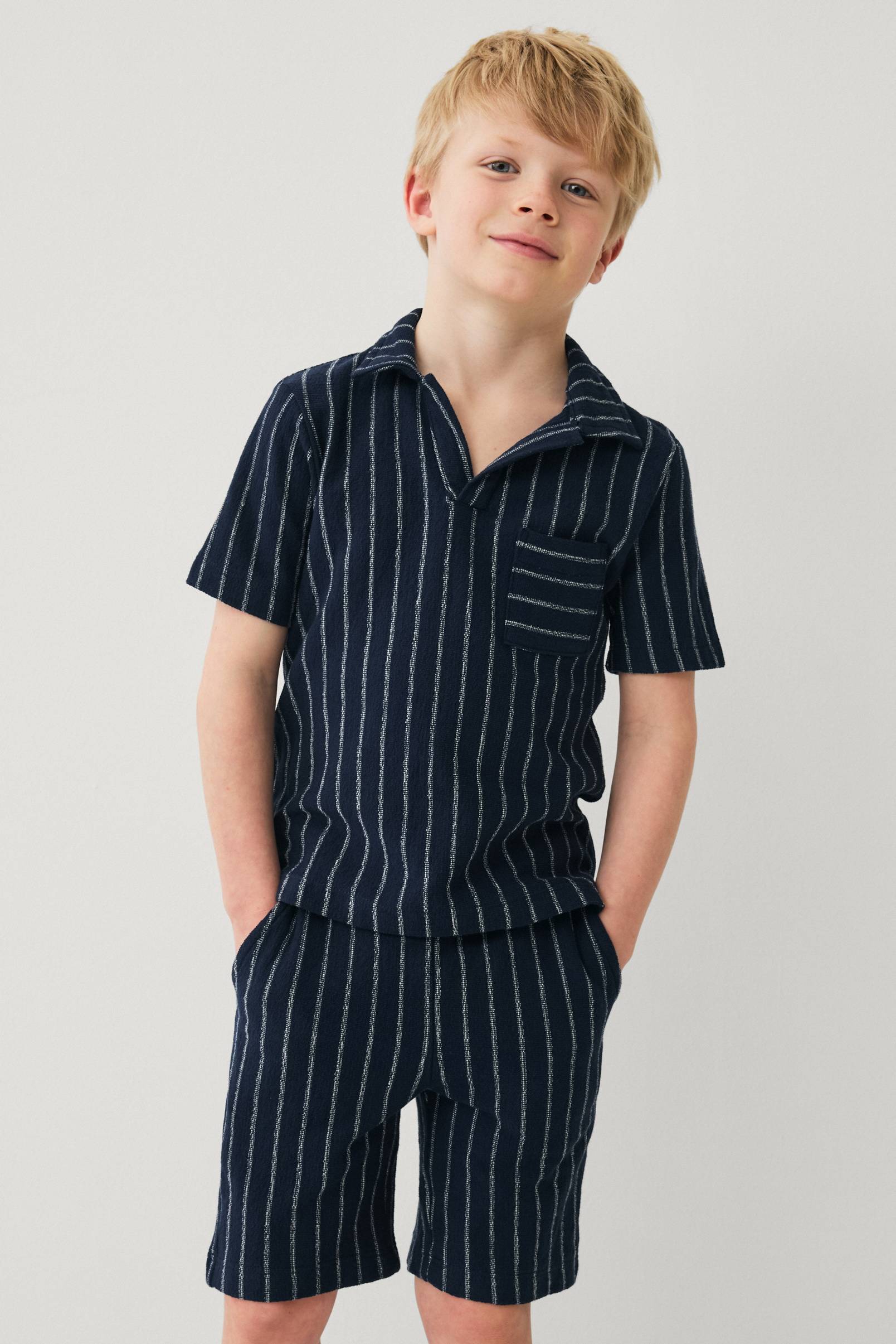 • 2-delt sæt i tynd, stribet frotté• Poloshirt med v-udskæring og krave• Korte ærmer• En brystlomme• Shorts med træksnørre ved taljen og lommer i siderne