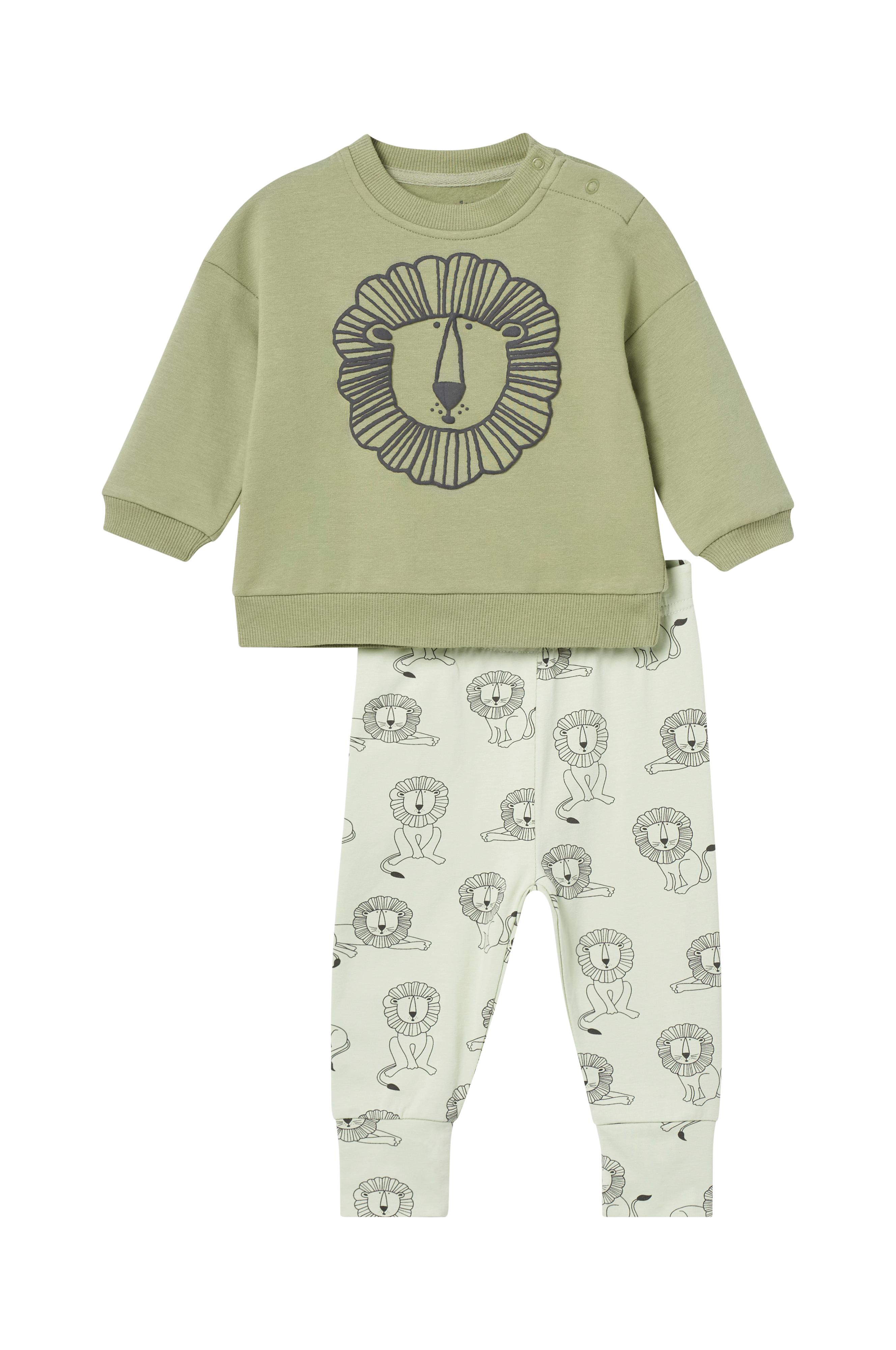 • 2-delt sæt• Sweatshirt med børstet, blød inderside• Rund halsudskæring• Trykknapper på en skulder• Ribmanchetter ved manchetterne og nederst• Leggings med elastisk talje• Manchetter ved enden af benene