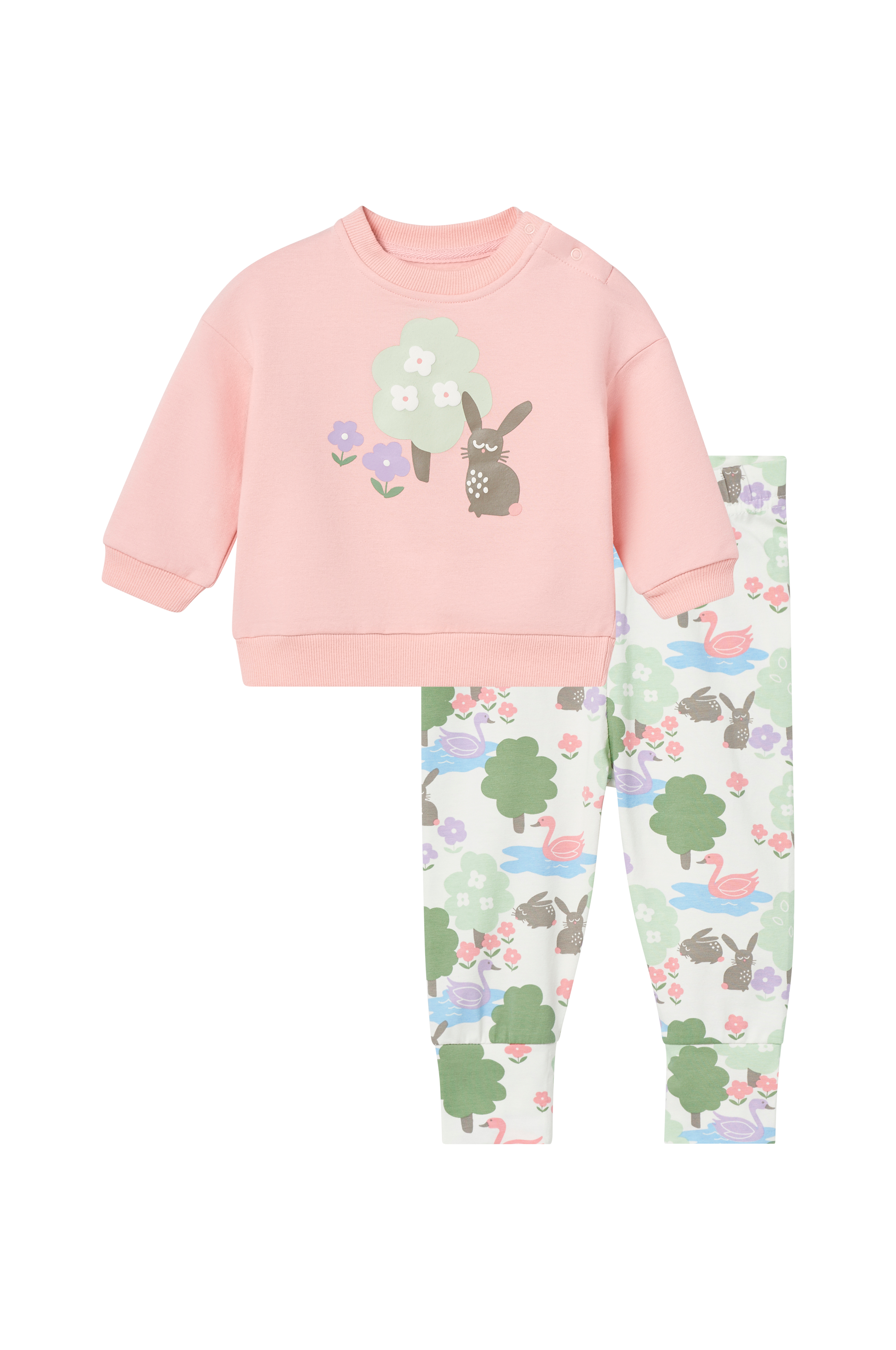 • 2-delt sæt• Sweatshirt med børstet, blød inderside• Rund halsudskæring• Trykknapper på en skulder• Ribmanchetter ved manchetterne og nederst• Leggings med elastisk talje• Manchetter ved enden af benene