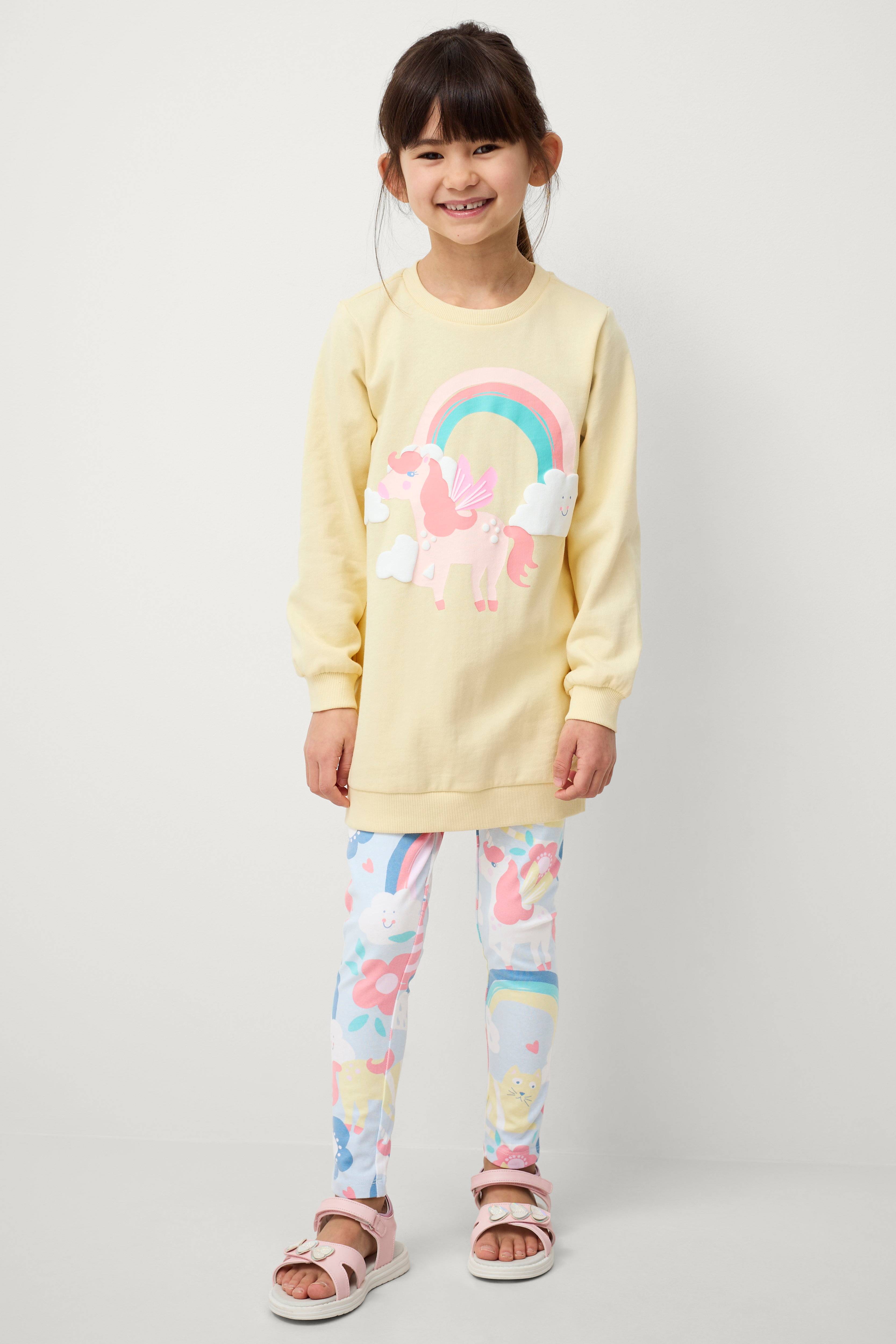 Modellen er 119 cm høj og bærer en str. 110/116