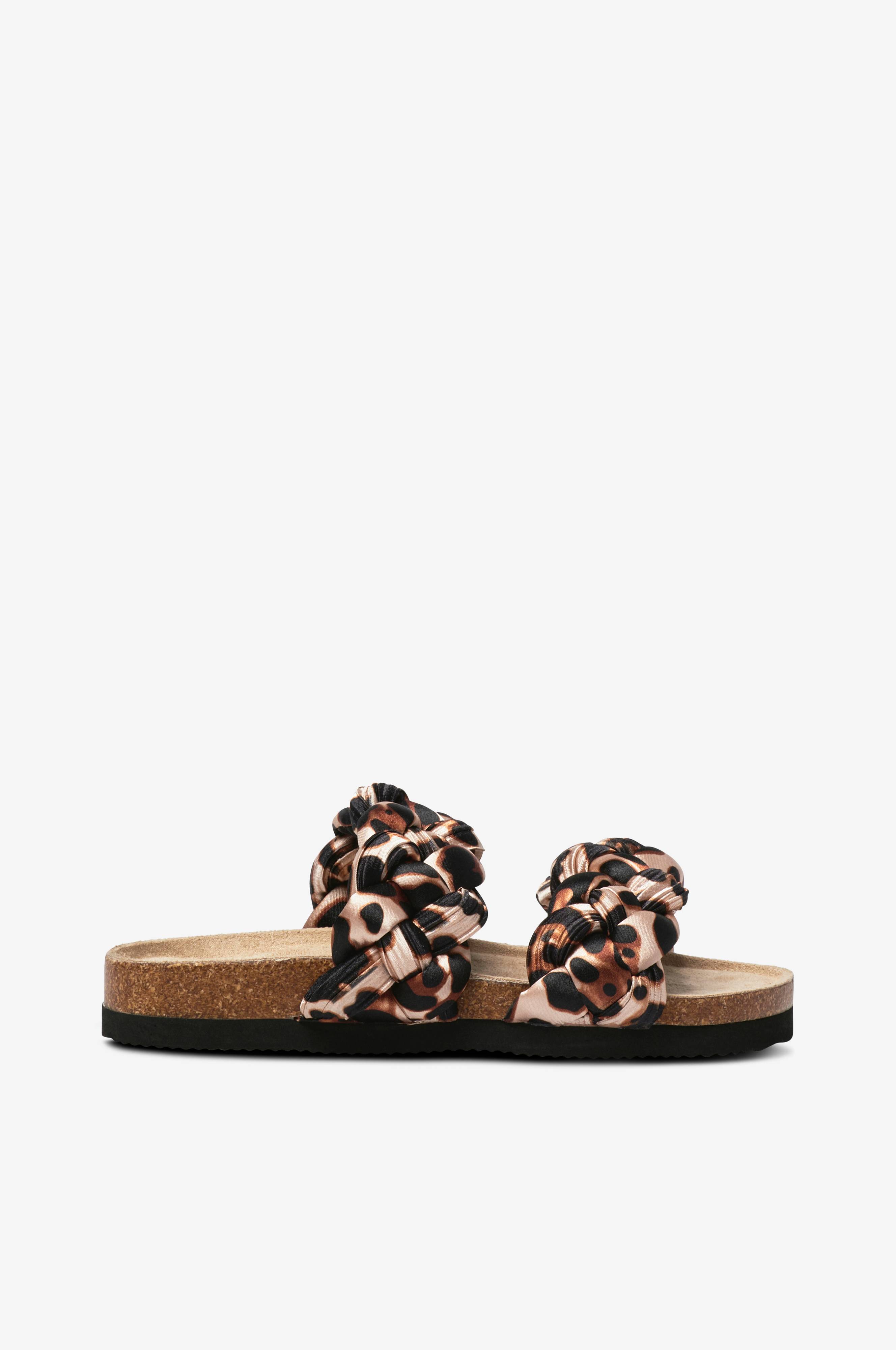 • To flettede remme i tekstil• Blød fodseng• Mønstret ydersål