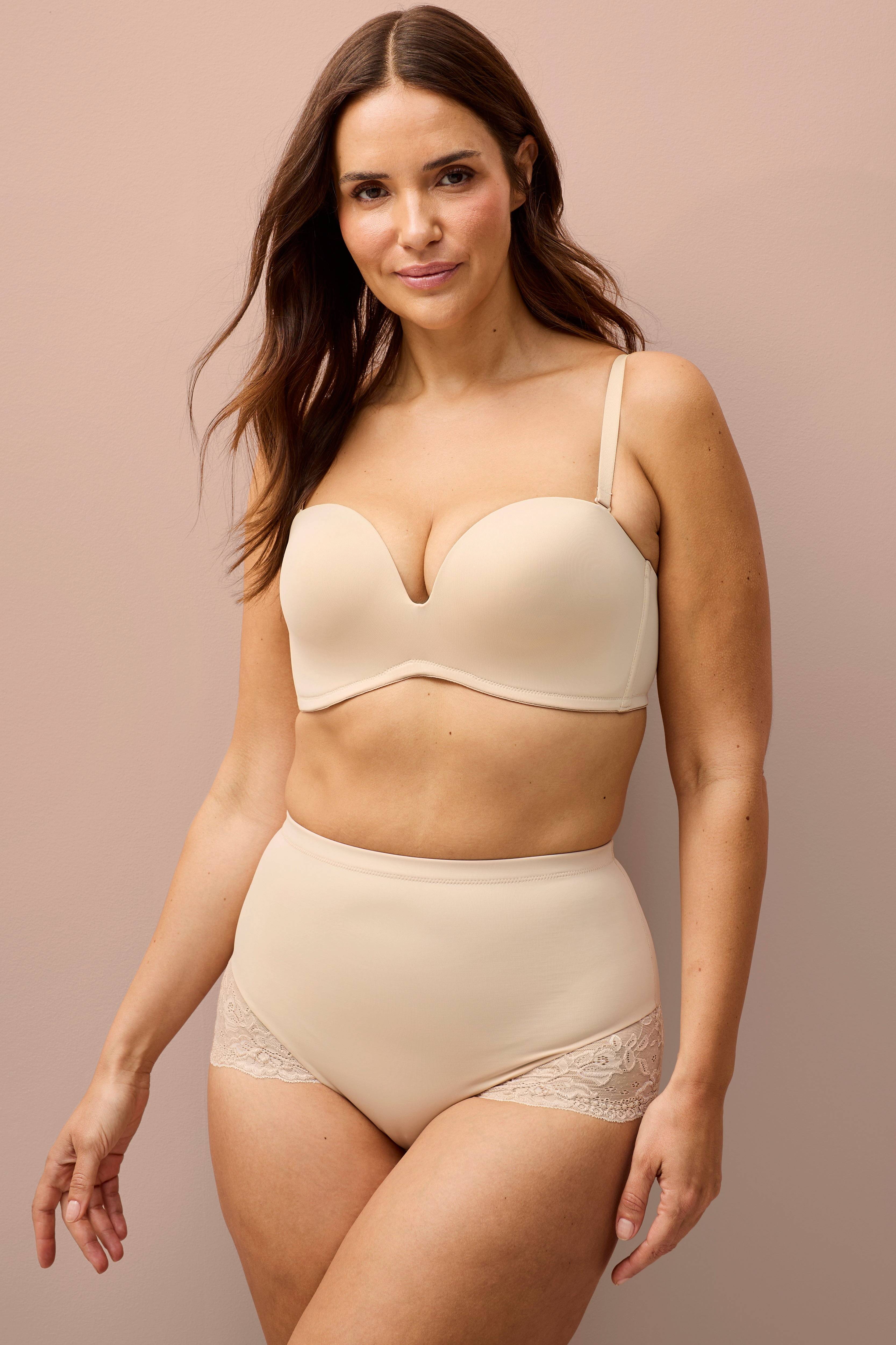 Formende trusse med høj talje for komfort og formende effekt over maven. Blondekant ved benafslutningen giver en blød overgang til benet. Fremhæver din silhuet uden at gå på kompromis med komforten.